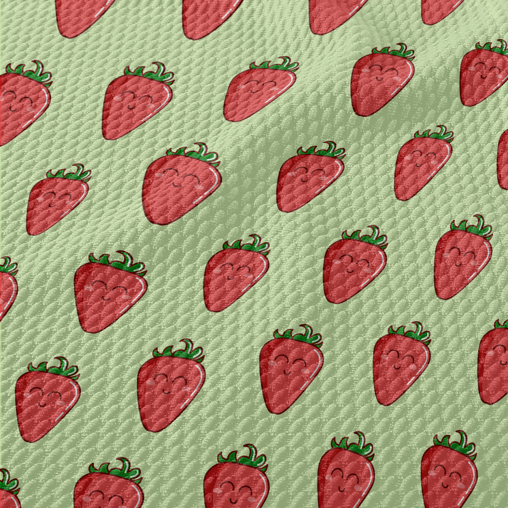 Smiling Cartoon Strawberry Birdseye Piqué