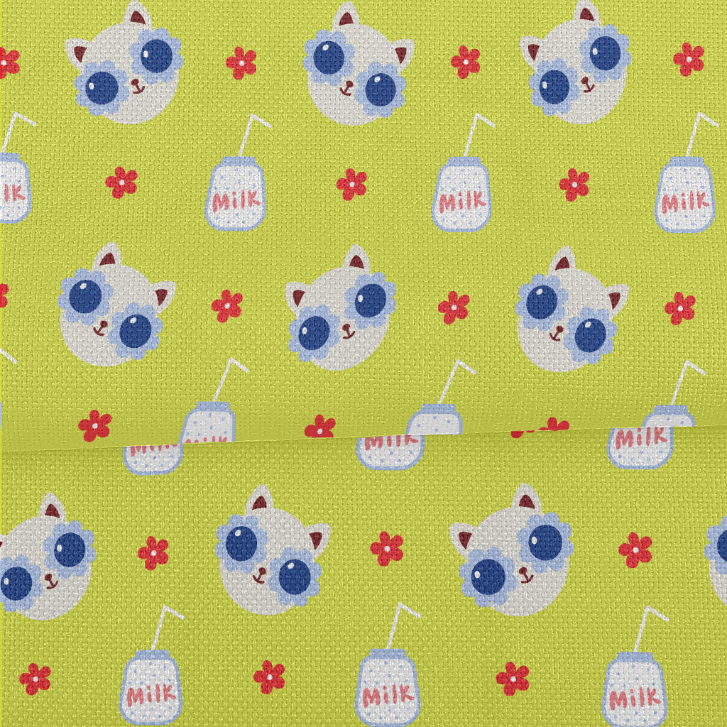 Cat With Flower Glasses Performance Linen