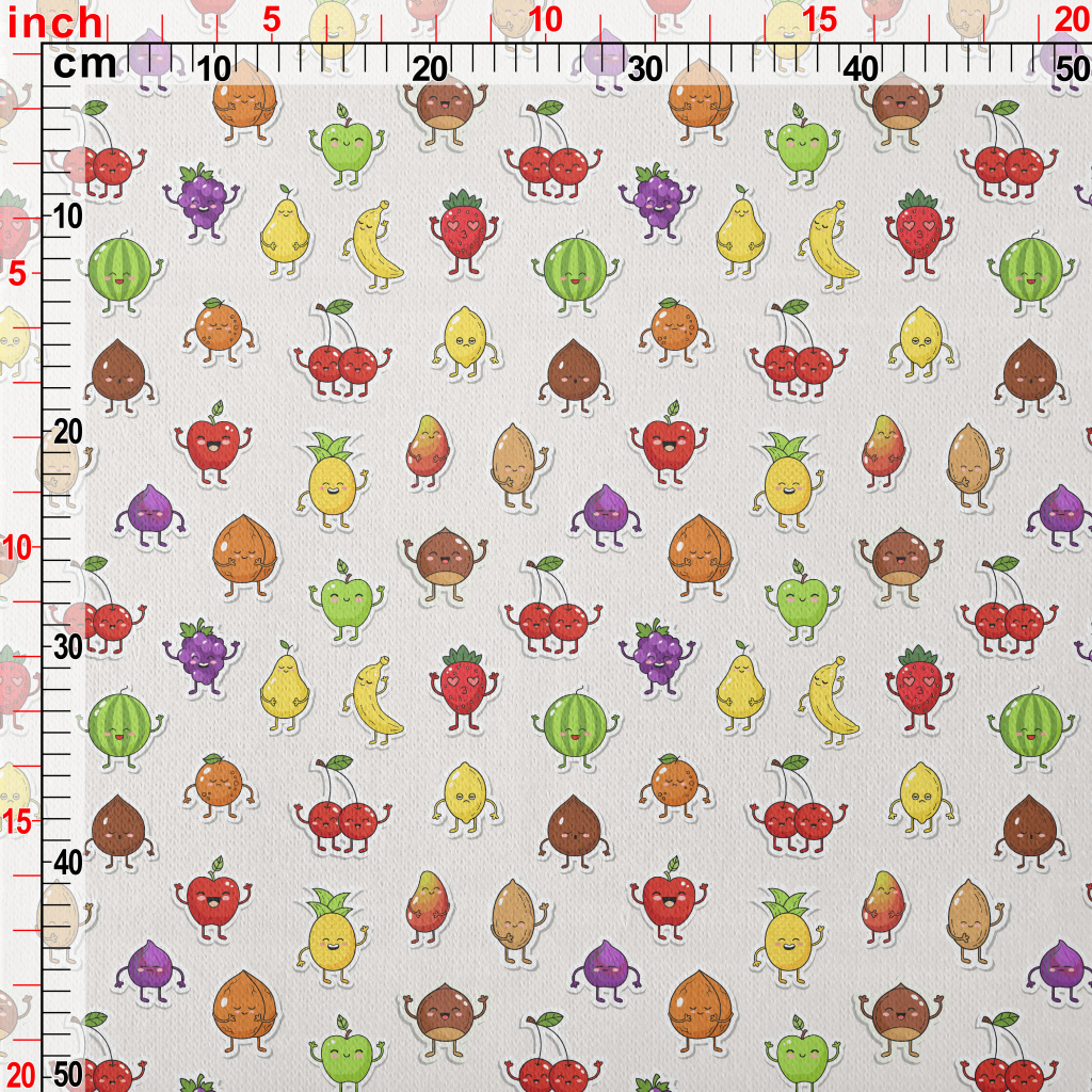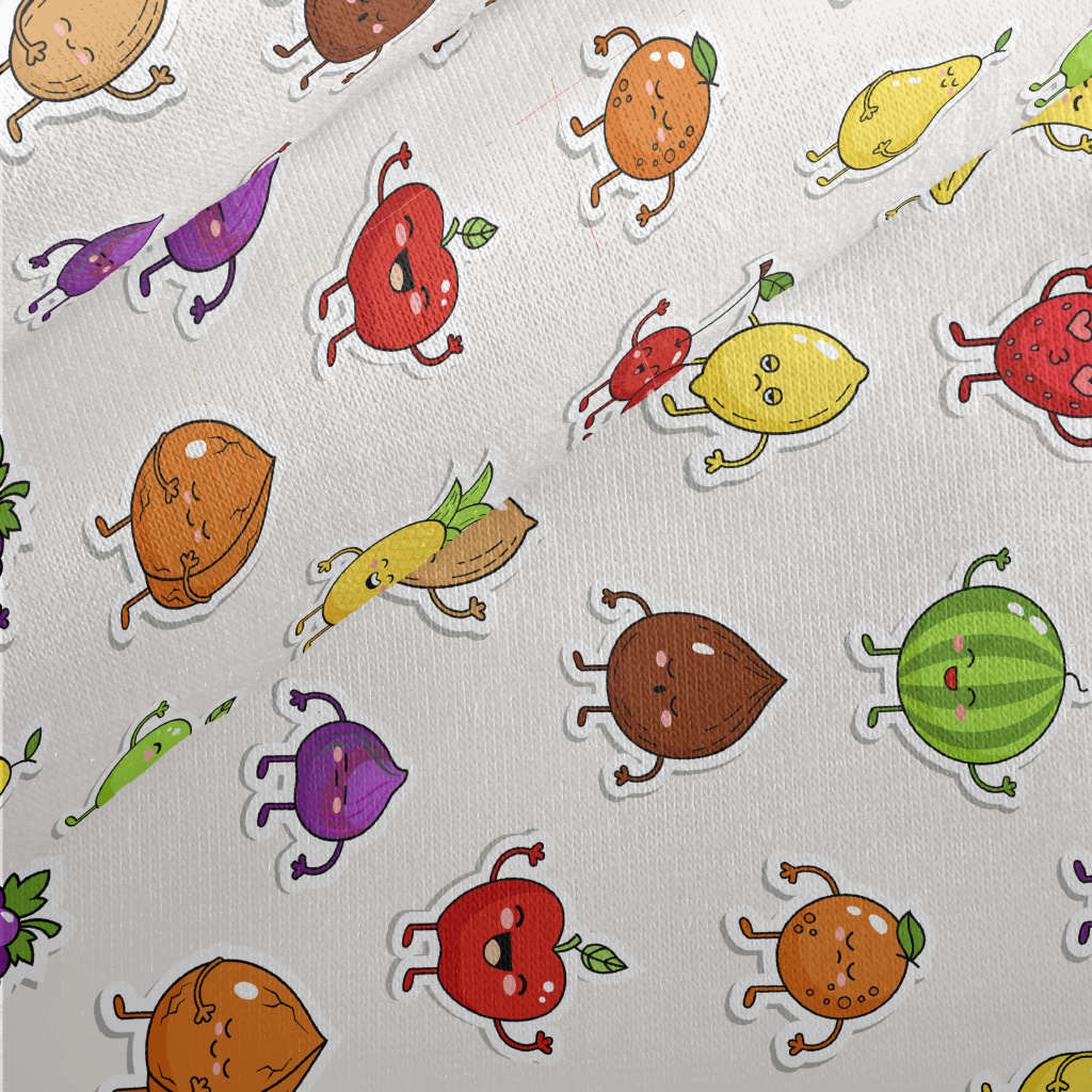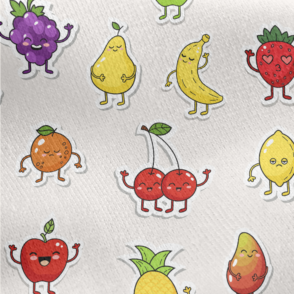 Happy Fruit Stickers Jersey Backed Fleece