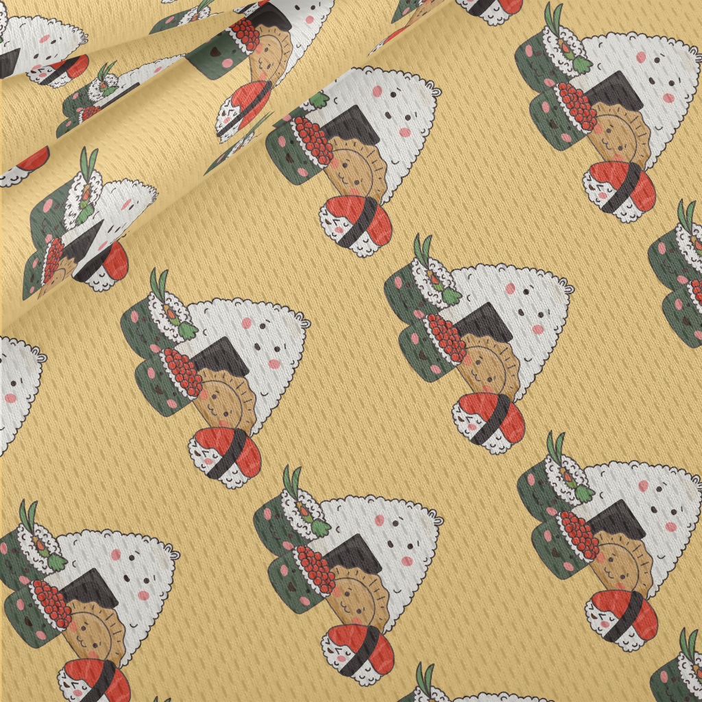 Hand Drawn Sushi And Rice Ball Athletic Mesh Flat Back