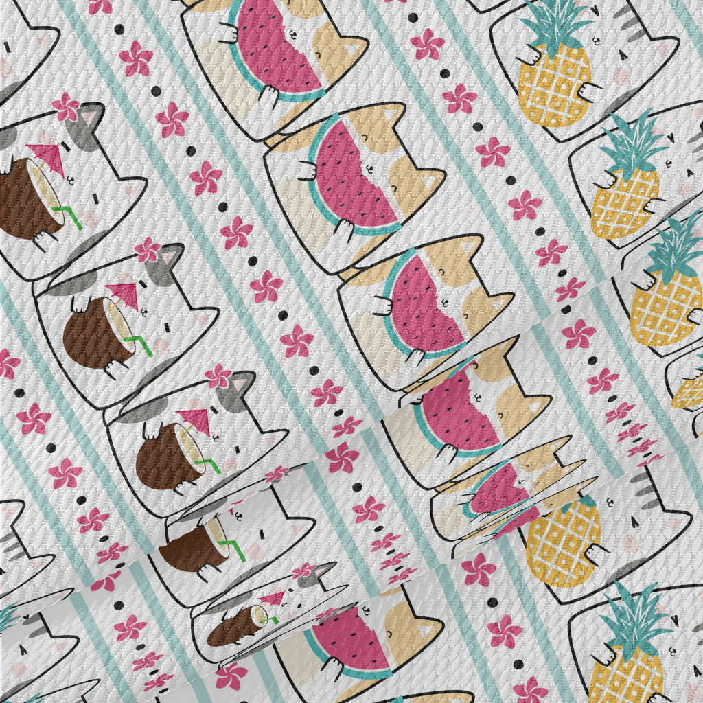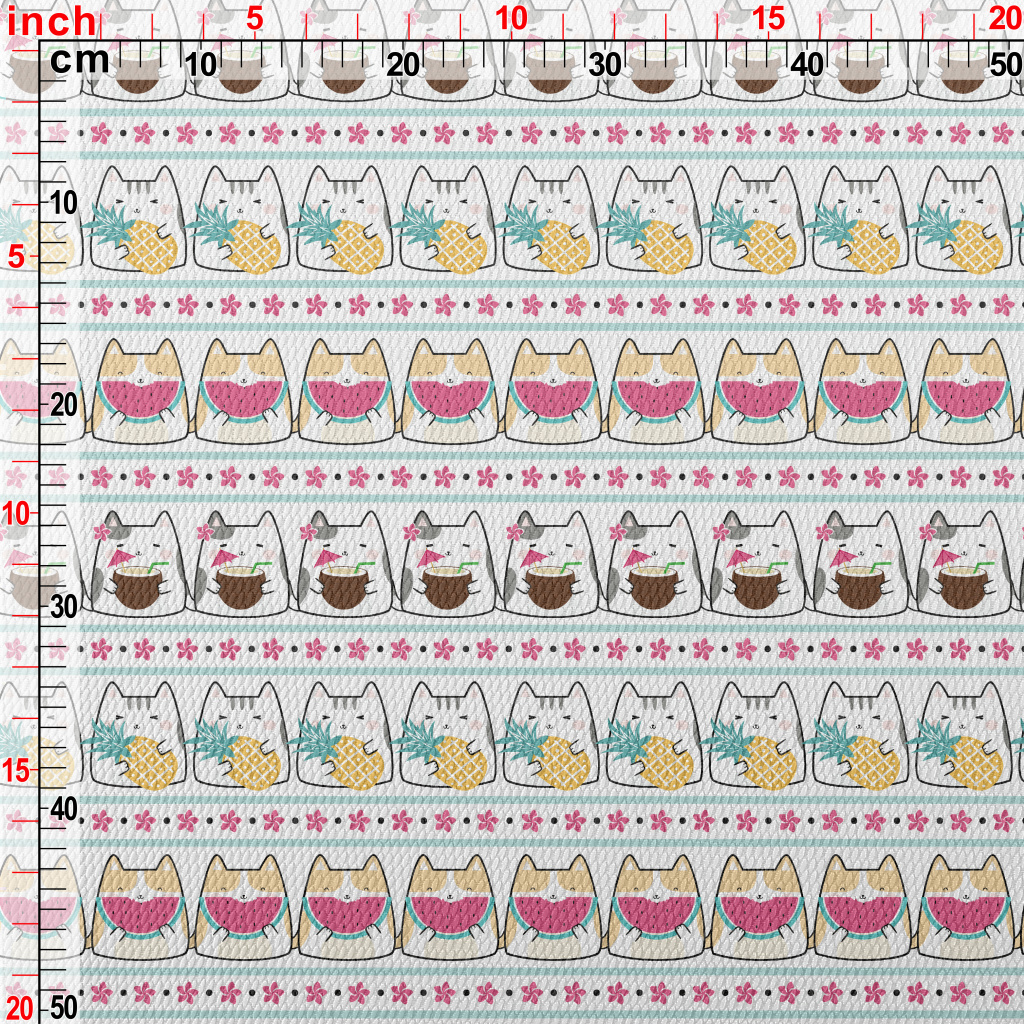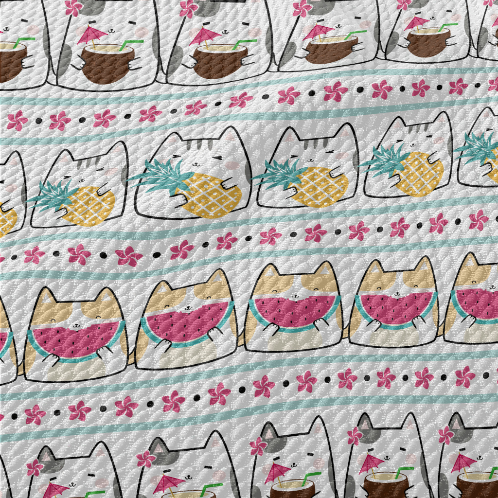 Cute Cat Eating Fruit Birdseye Piqué