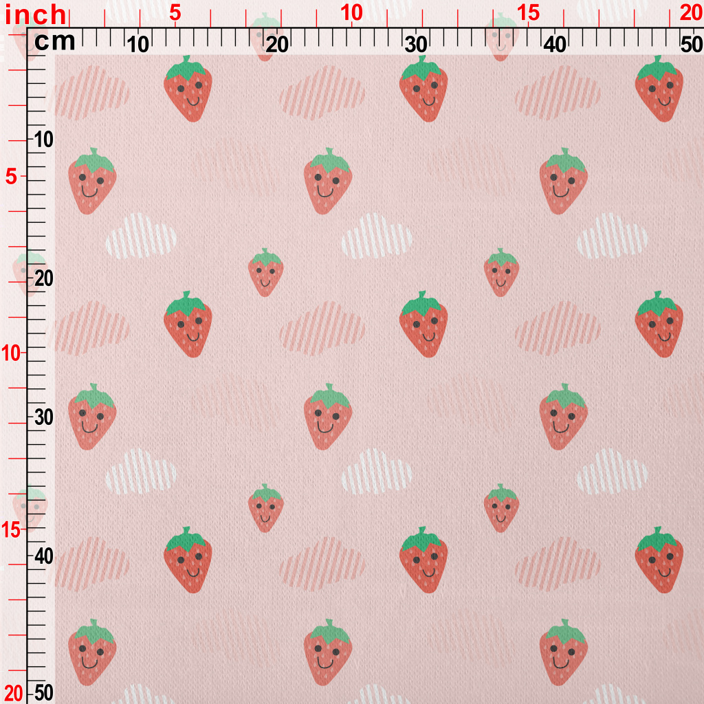 Hand Drawn Strawberry And Clou Jersey Backed Fleece