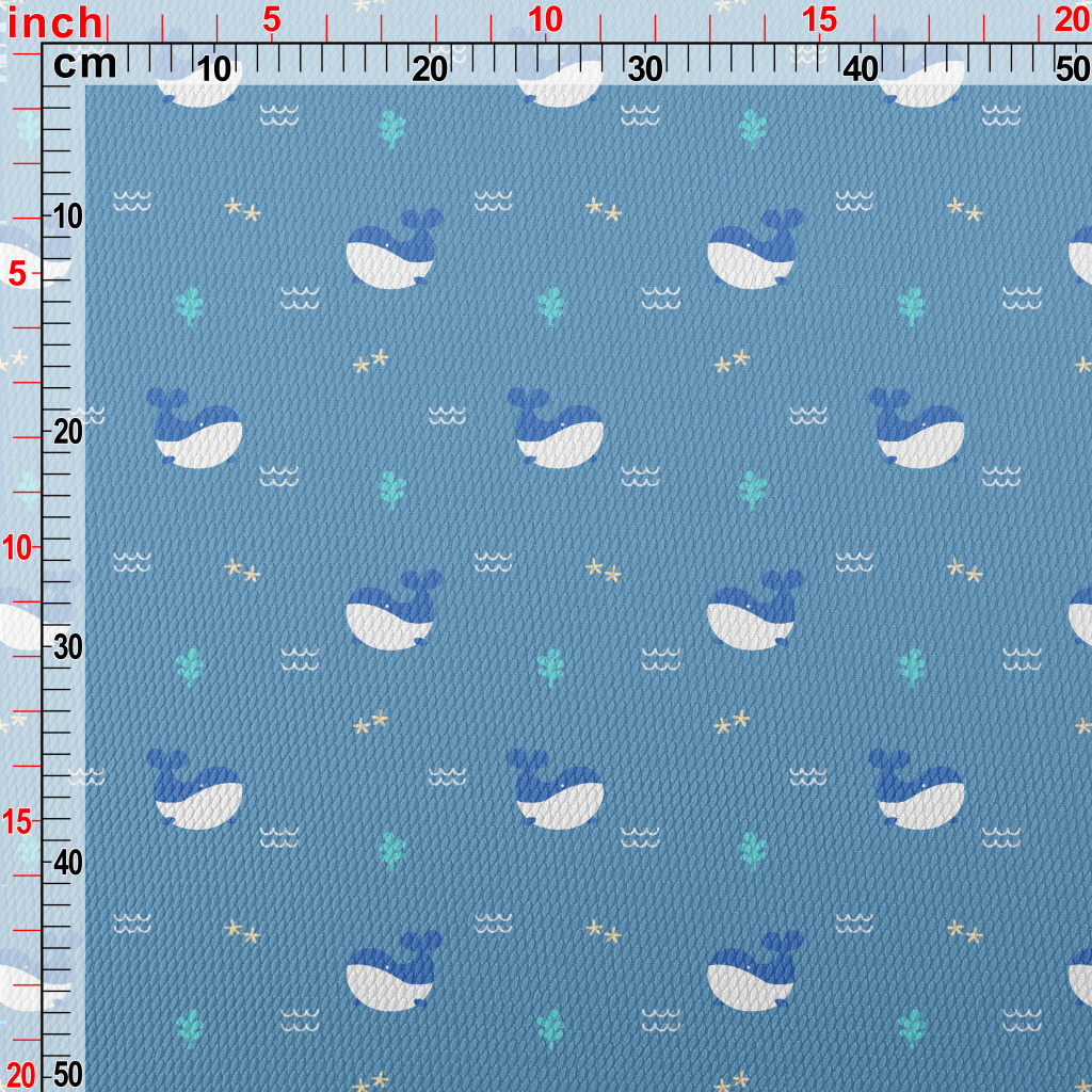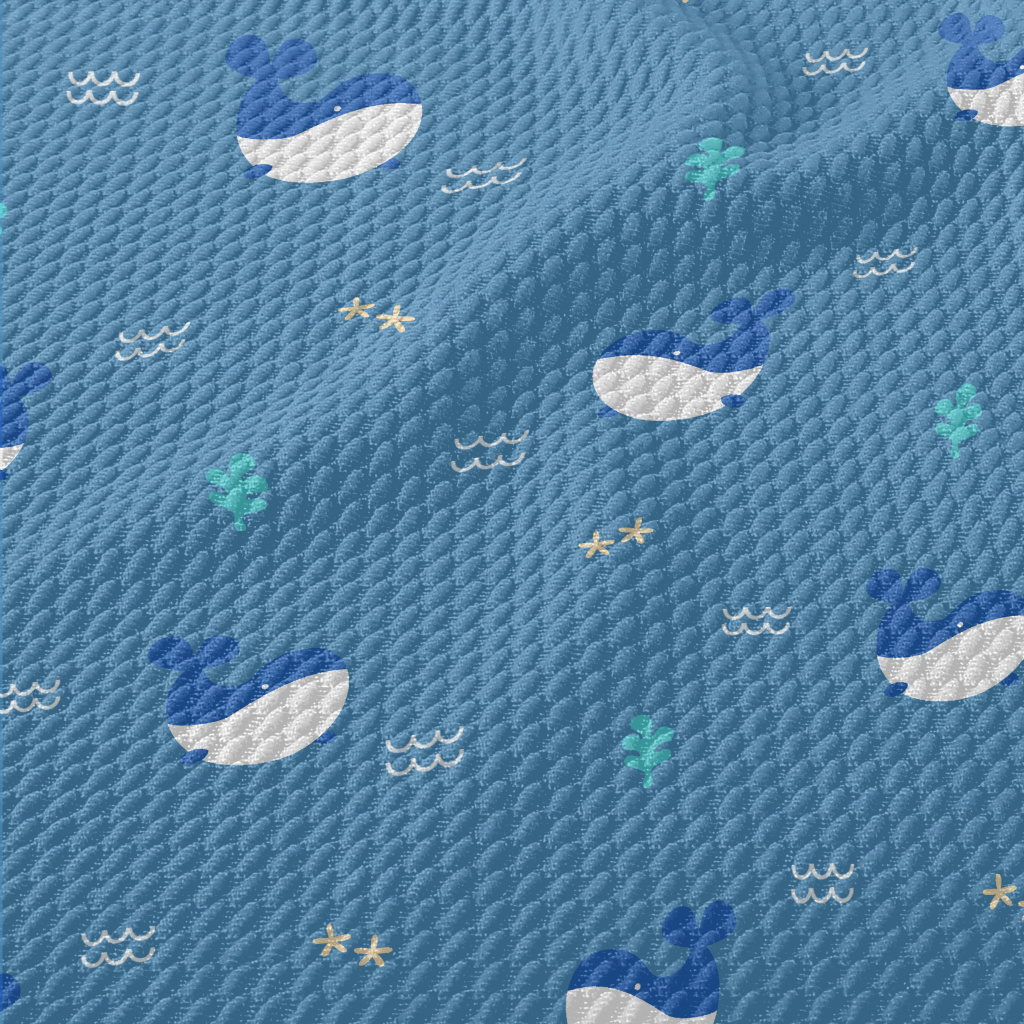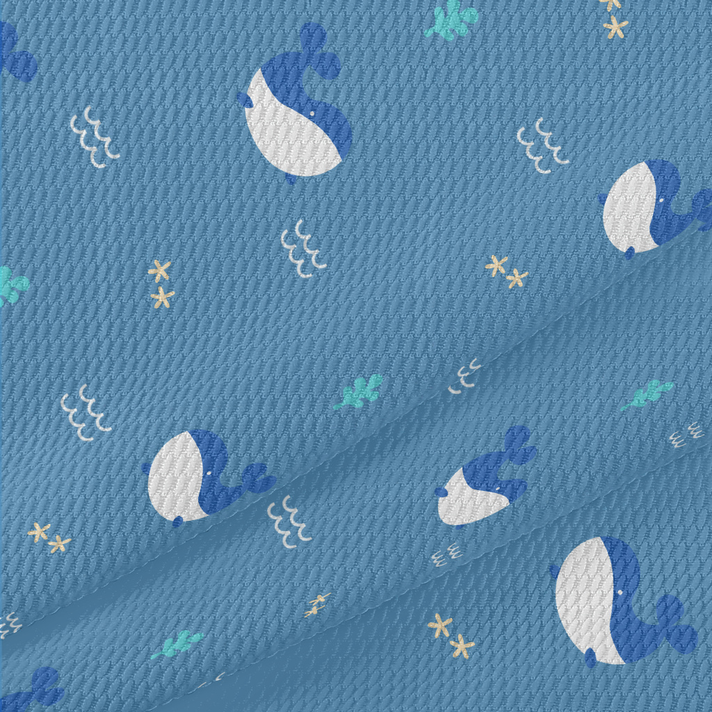 Cute Whale Pattern Birdseye Piqué