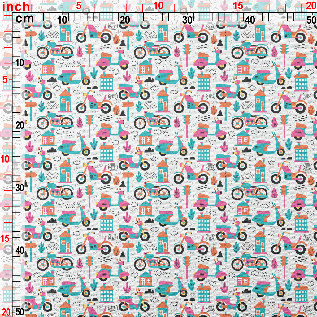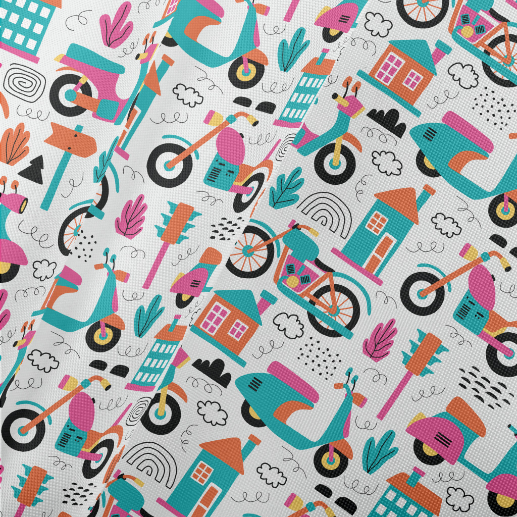 Bright Cartoon Motorcycle Pongee