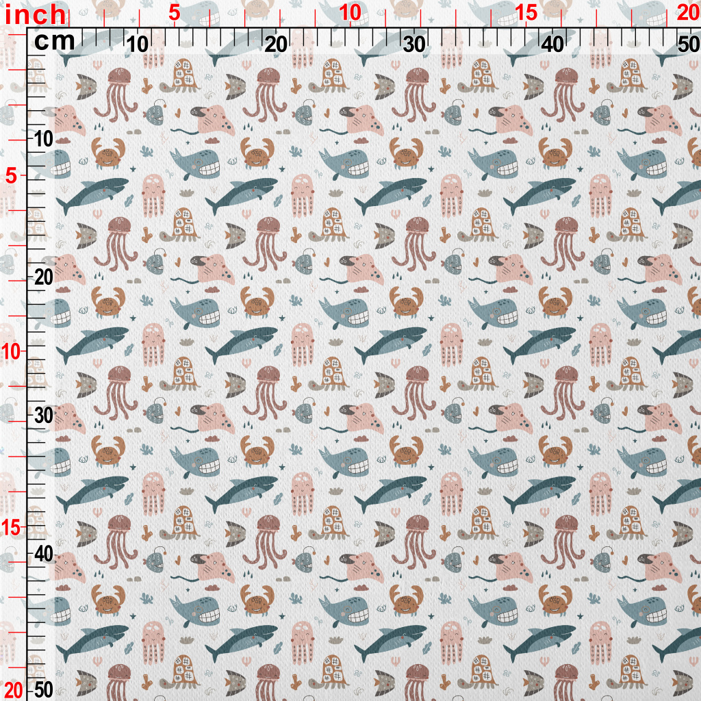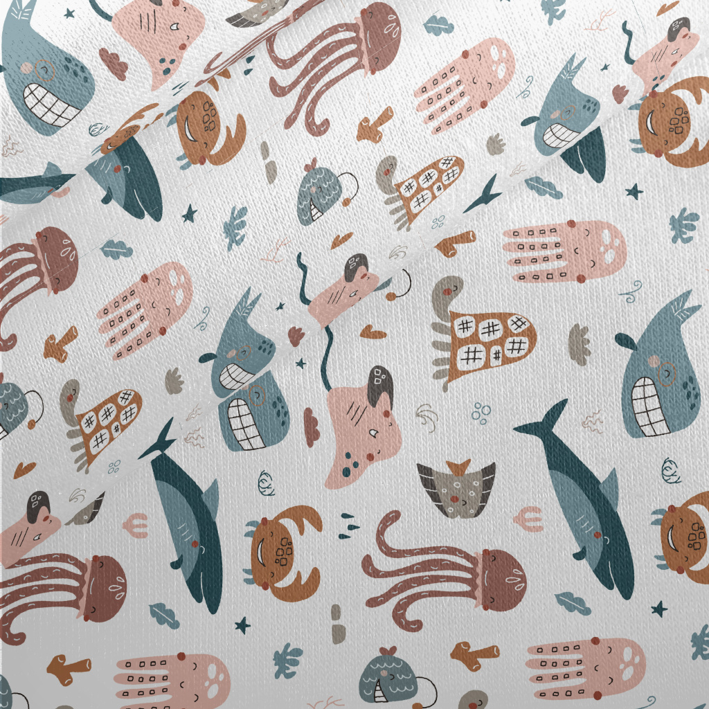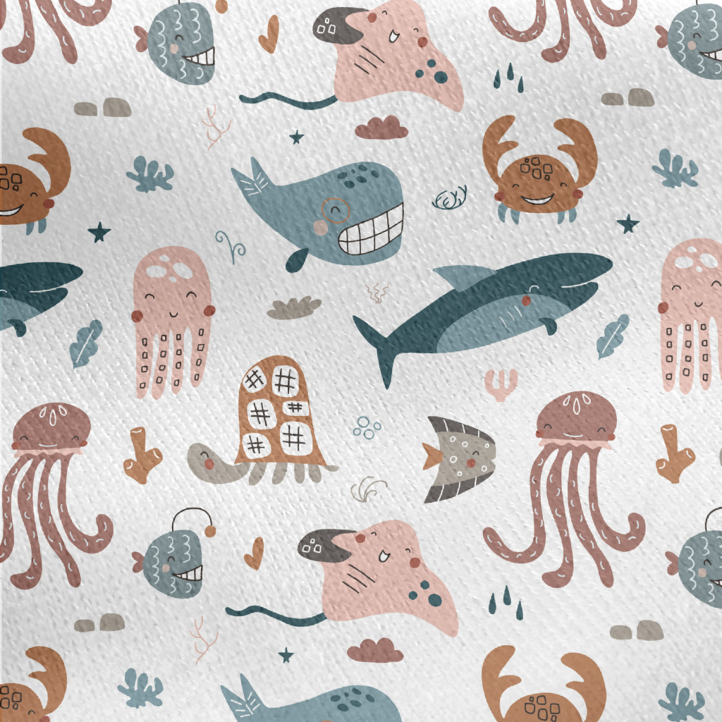 Smiley Underwater Creature Gra Jersey Backed Fleece