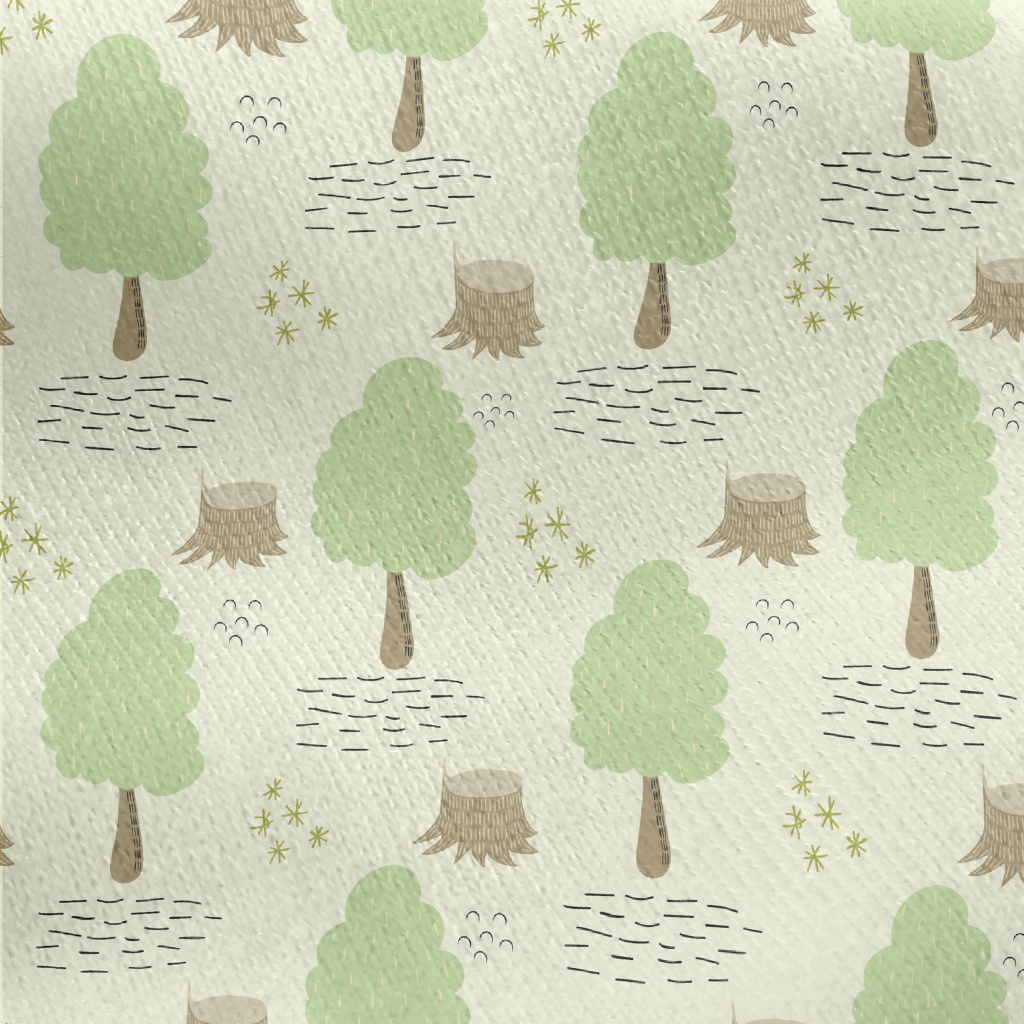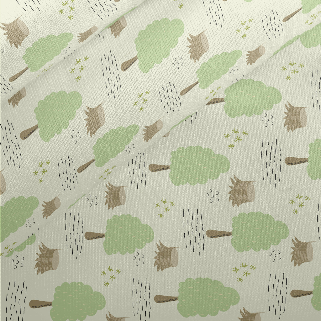Hand Drawn Cartoon Forest Jersey Backed Fleece