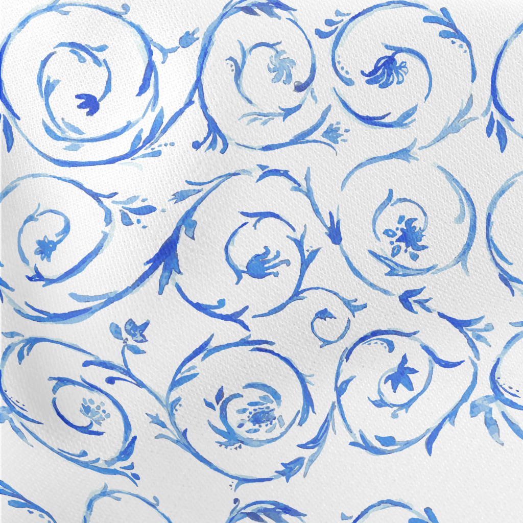 Watercolor Vines And Flowers Lightweight Cotton Poplin