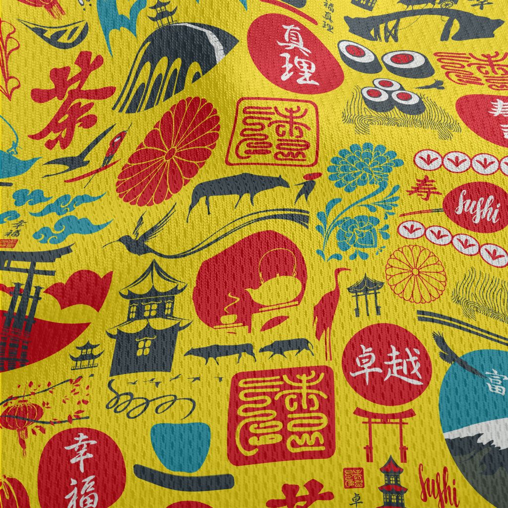 Japanese Cultural Pattern Athletic Mesh Flat Back