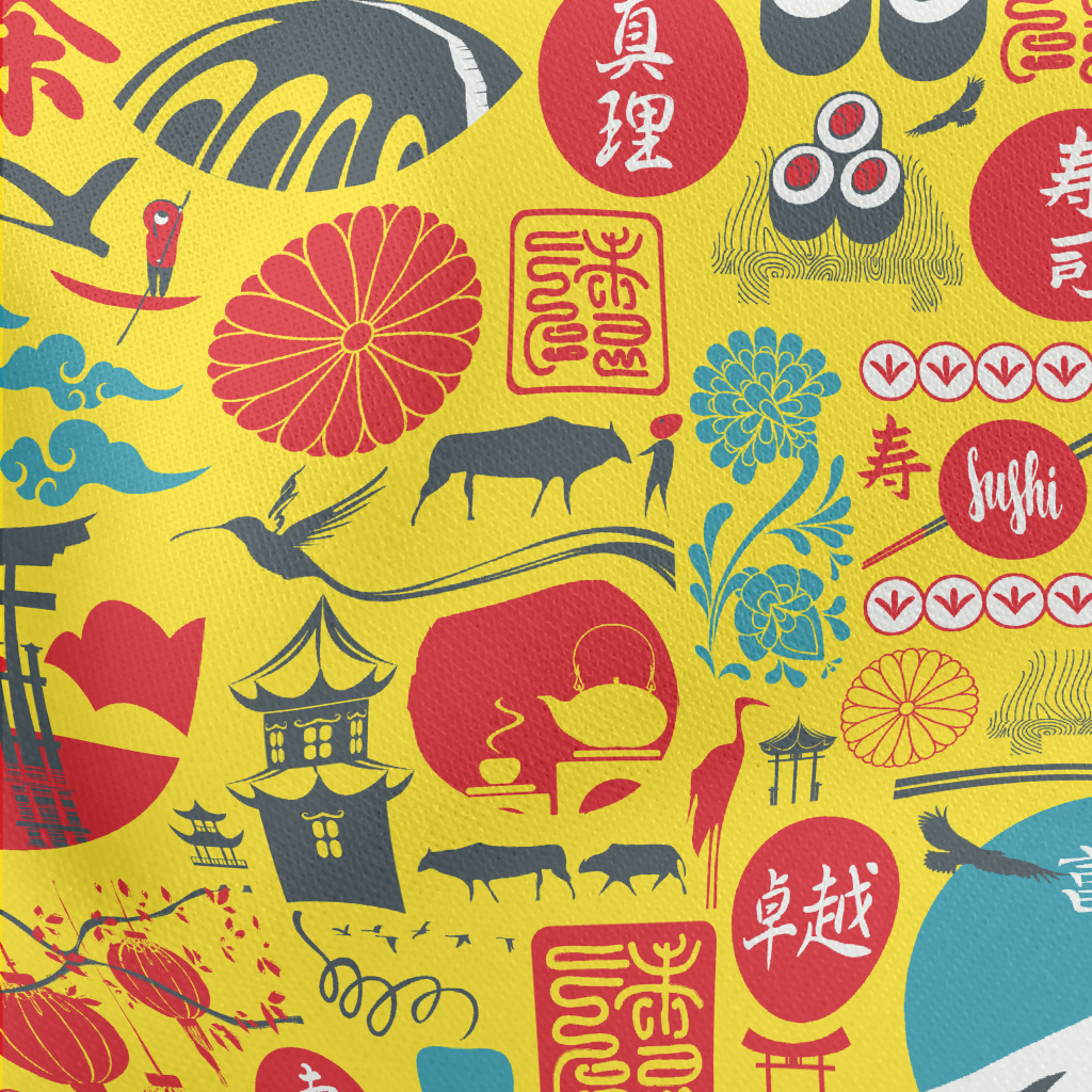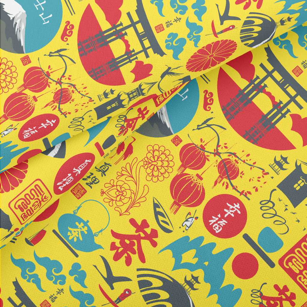 Japanese Cultural Pattern Lightweight Cotton Poplin