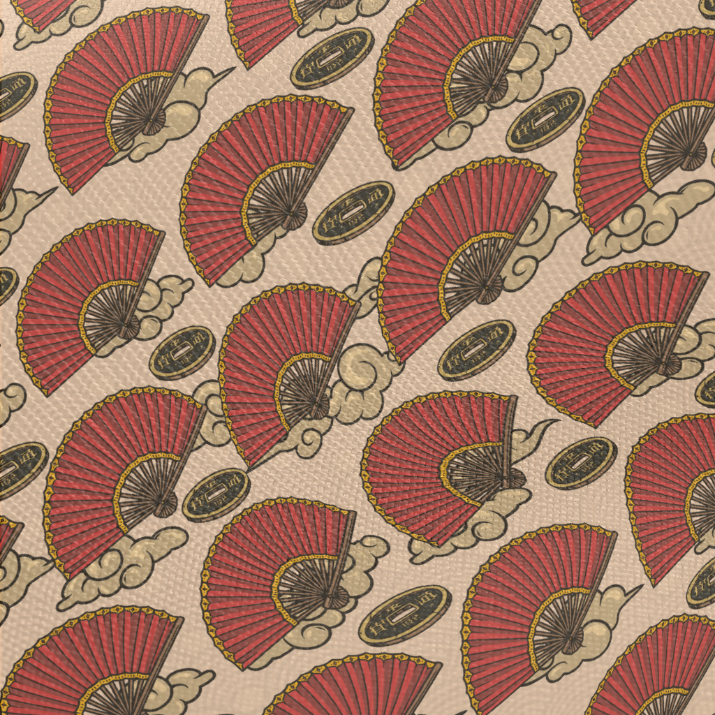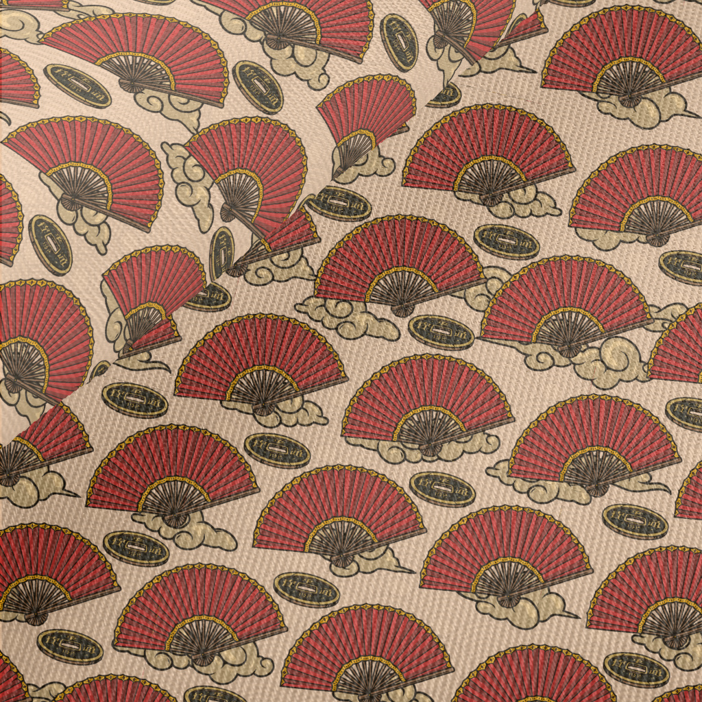 Folding Fan And Copper Coins Midweight Cotton Poplin