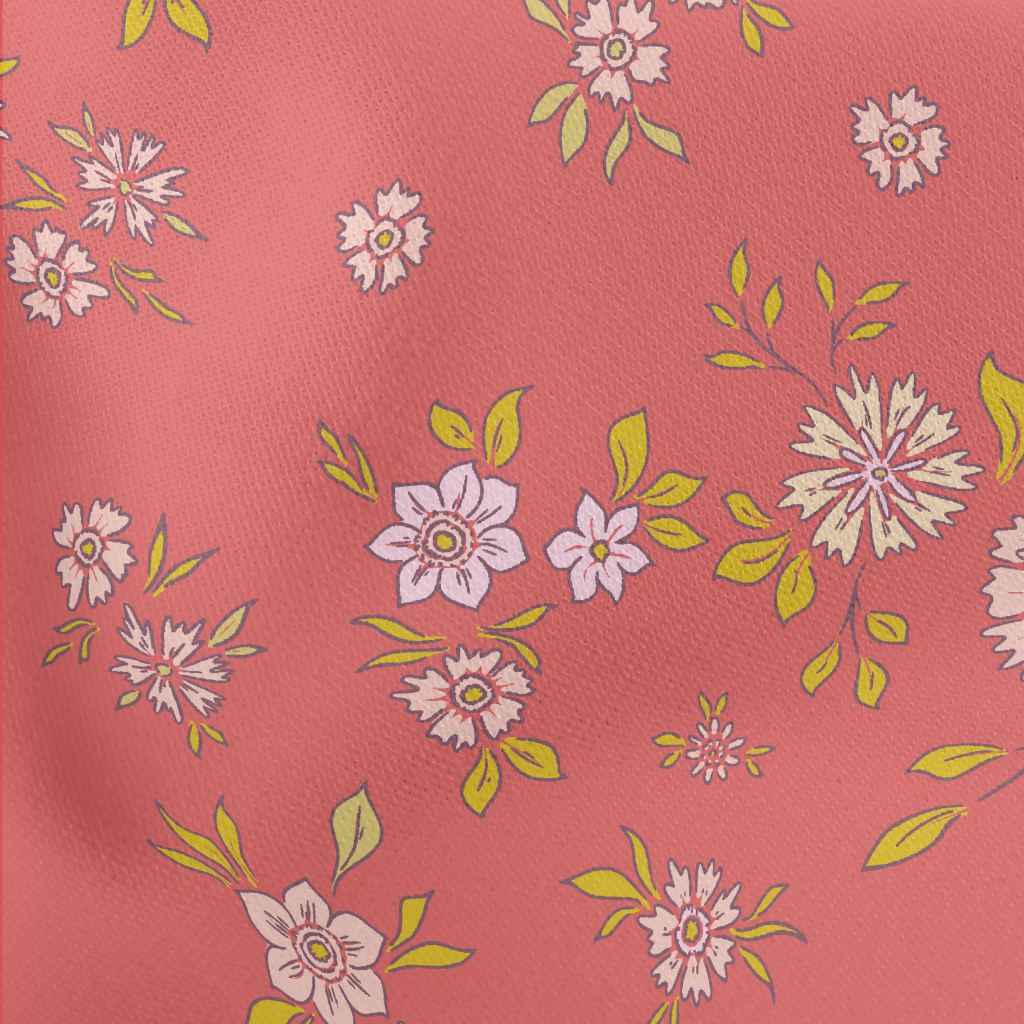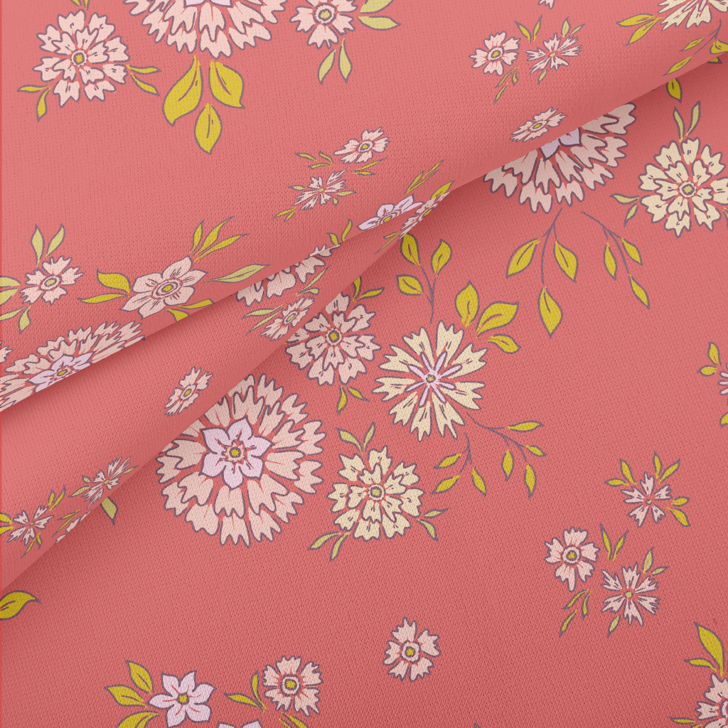 Hand Painted Delicate Flowers Stretch Ponte