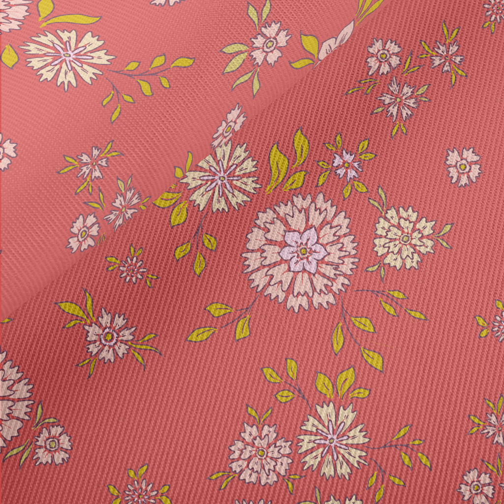 Hand Painted Delicate Flowers Midweight Cotton Poplin