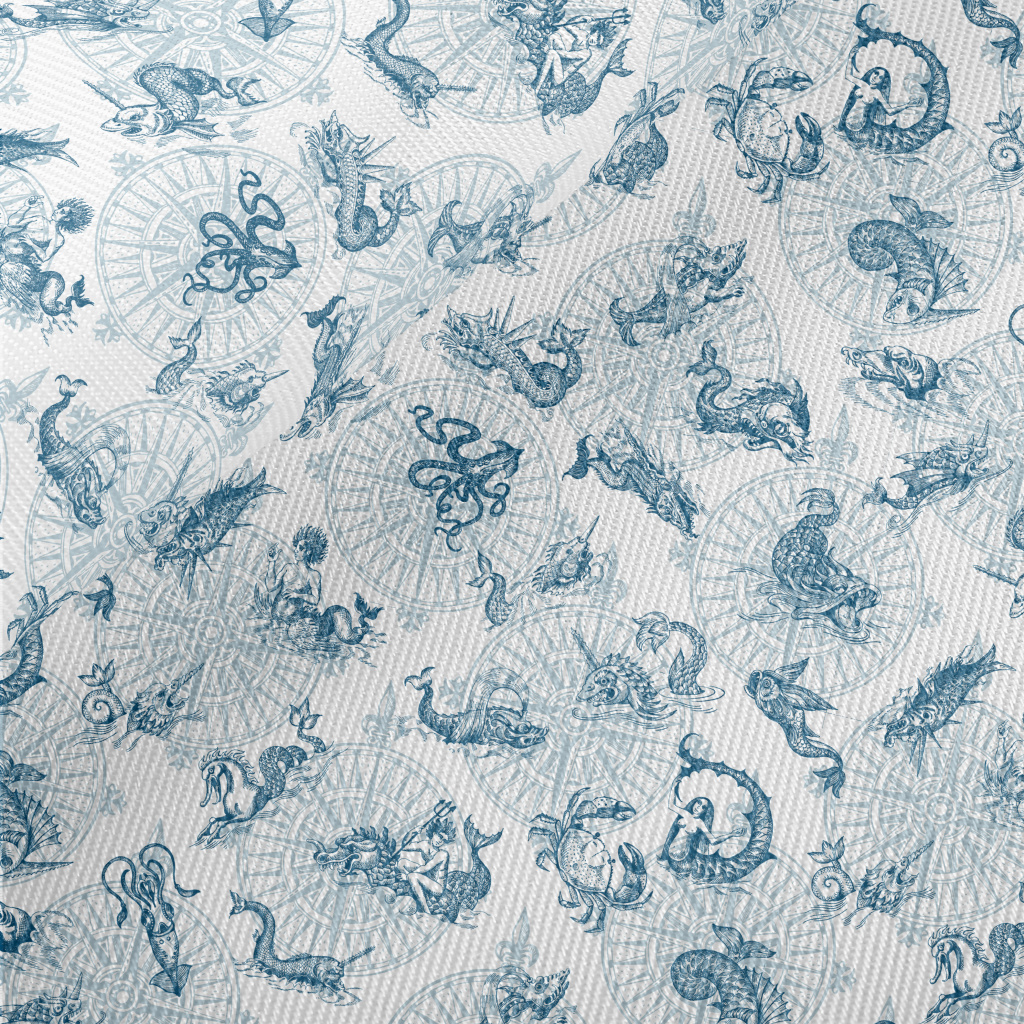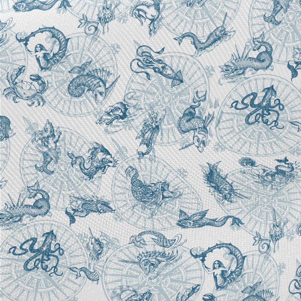 Vintage Hand Drawn Sea Monster Twill