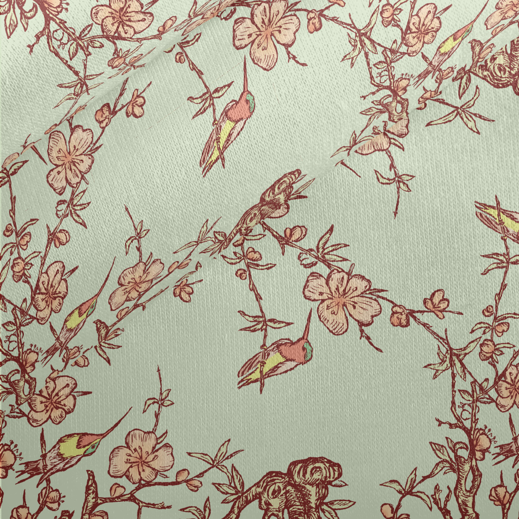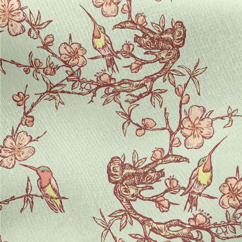Hand Drawn Hummingbird And Che Jersey Backed Fleece