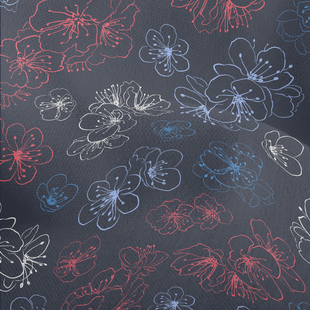 Colorful Hand Drawn Cherry Blo Lightweight Performance Linen