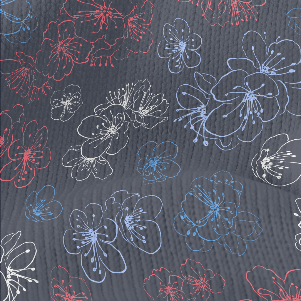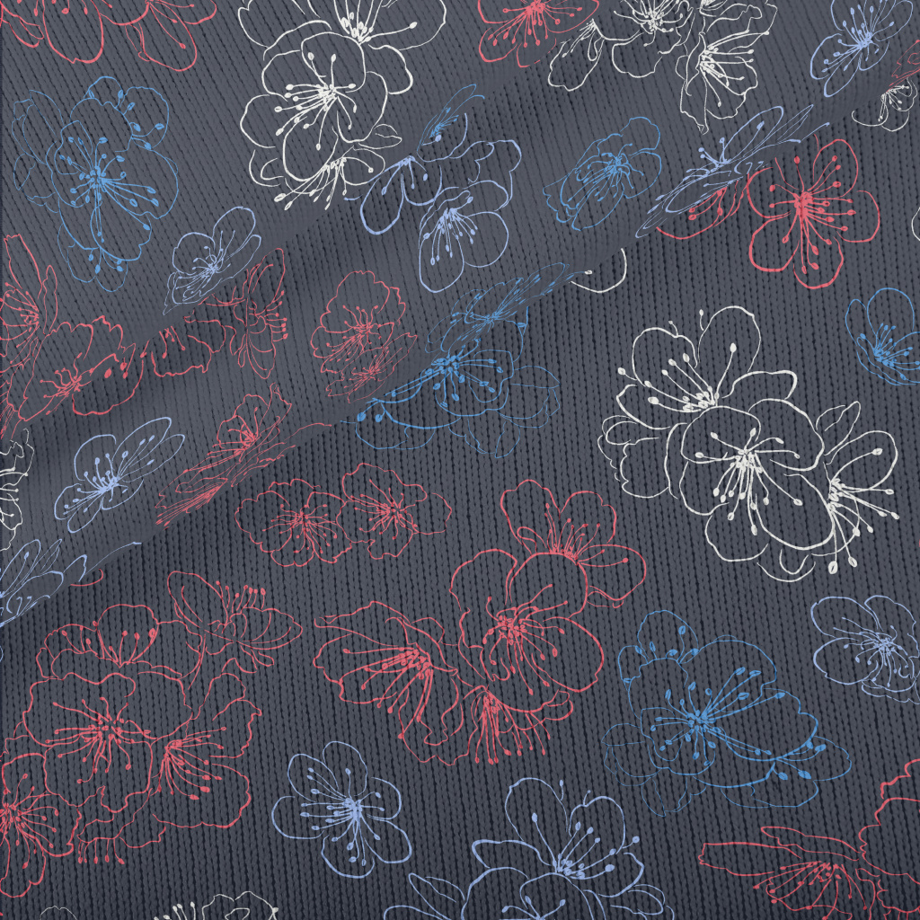 Colorful Hand Drawn Cherry Blo Stretch Jersey