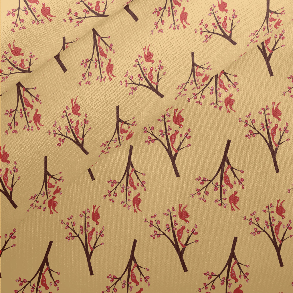 Autumn Birds And Branches Jersey Backed Fleece