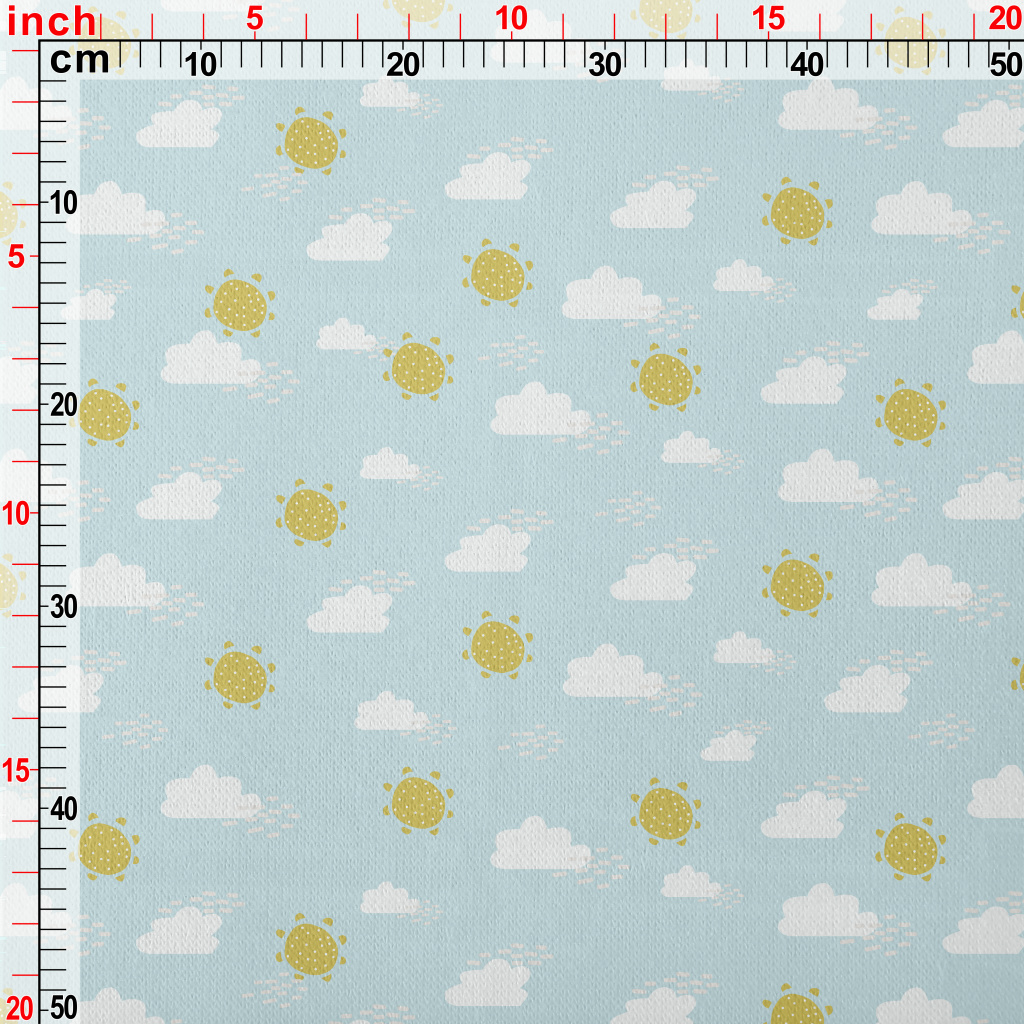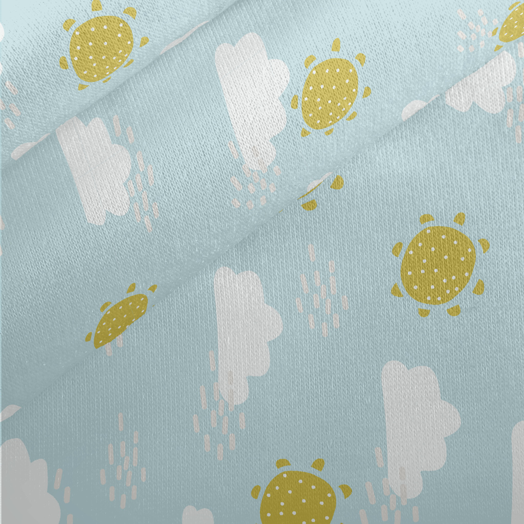 Cute Clouds And Sun Jersey Backed Fleece