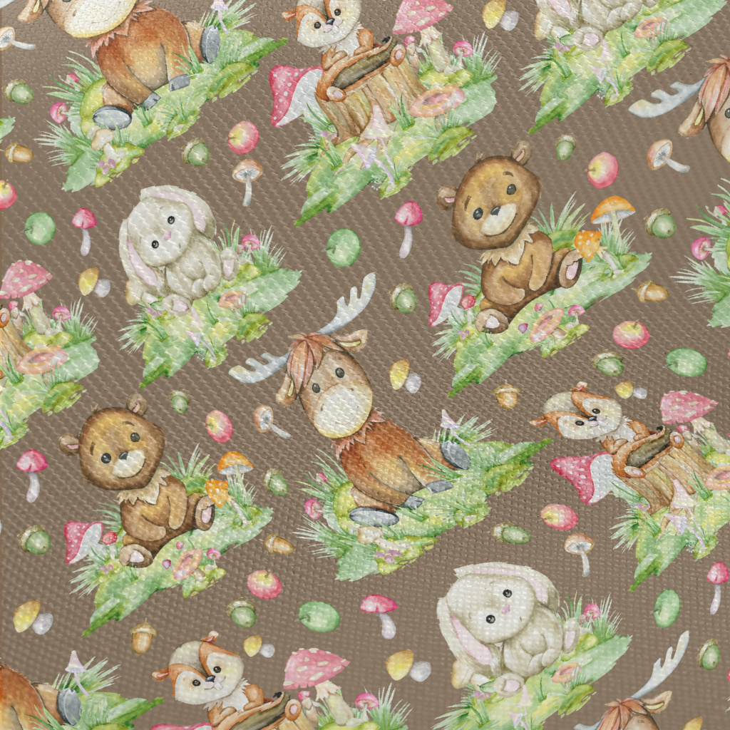 Cartoon Watercolor Baby Animal Midweight Cotton Poplin