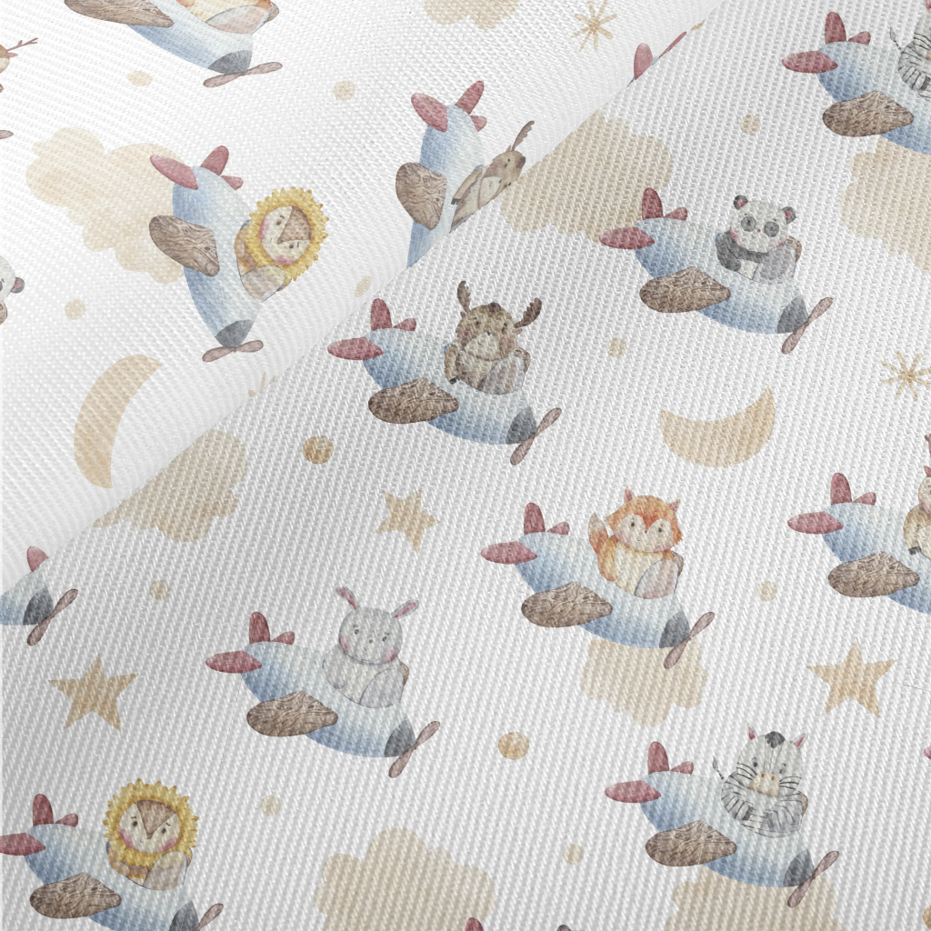 Watercolor Animals Flying Plan Midweight Cotton Poplin