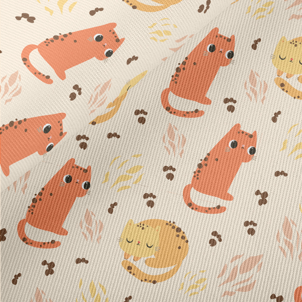 Orange Cartoon Cat Twill
