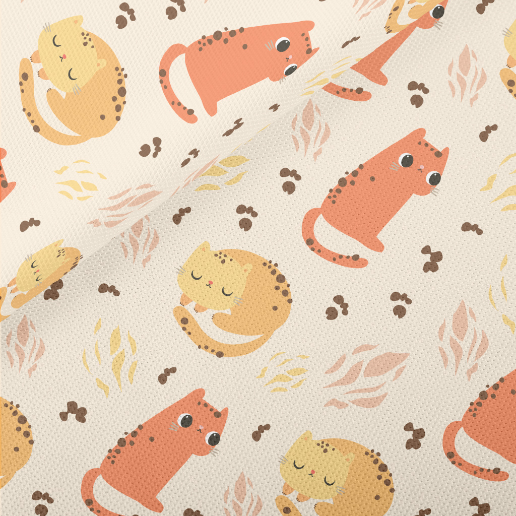 Orange Cartoon Cat Piqué
