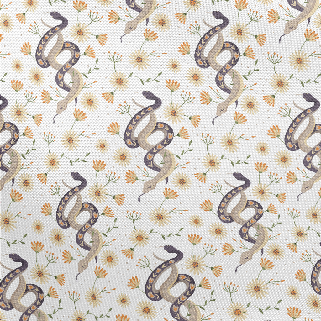 Beautiful Snake With Flowers Pongee