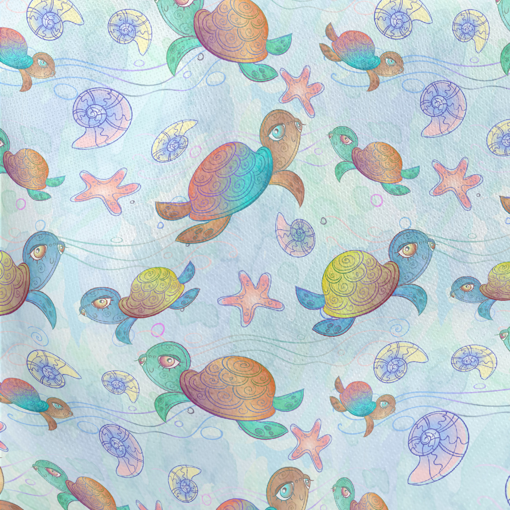 Colorful Hand Drawn Turtle Lightweight Cotton Poplin