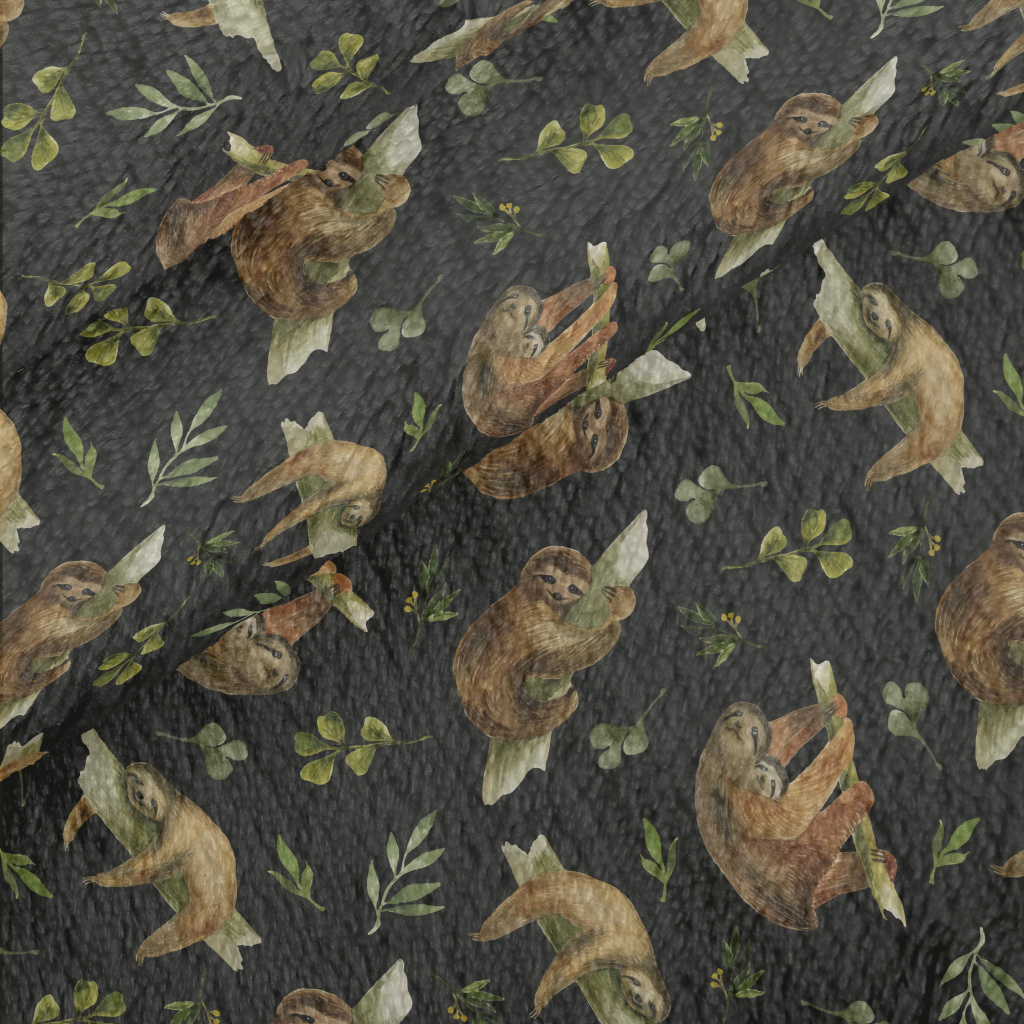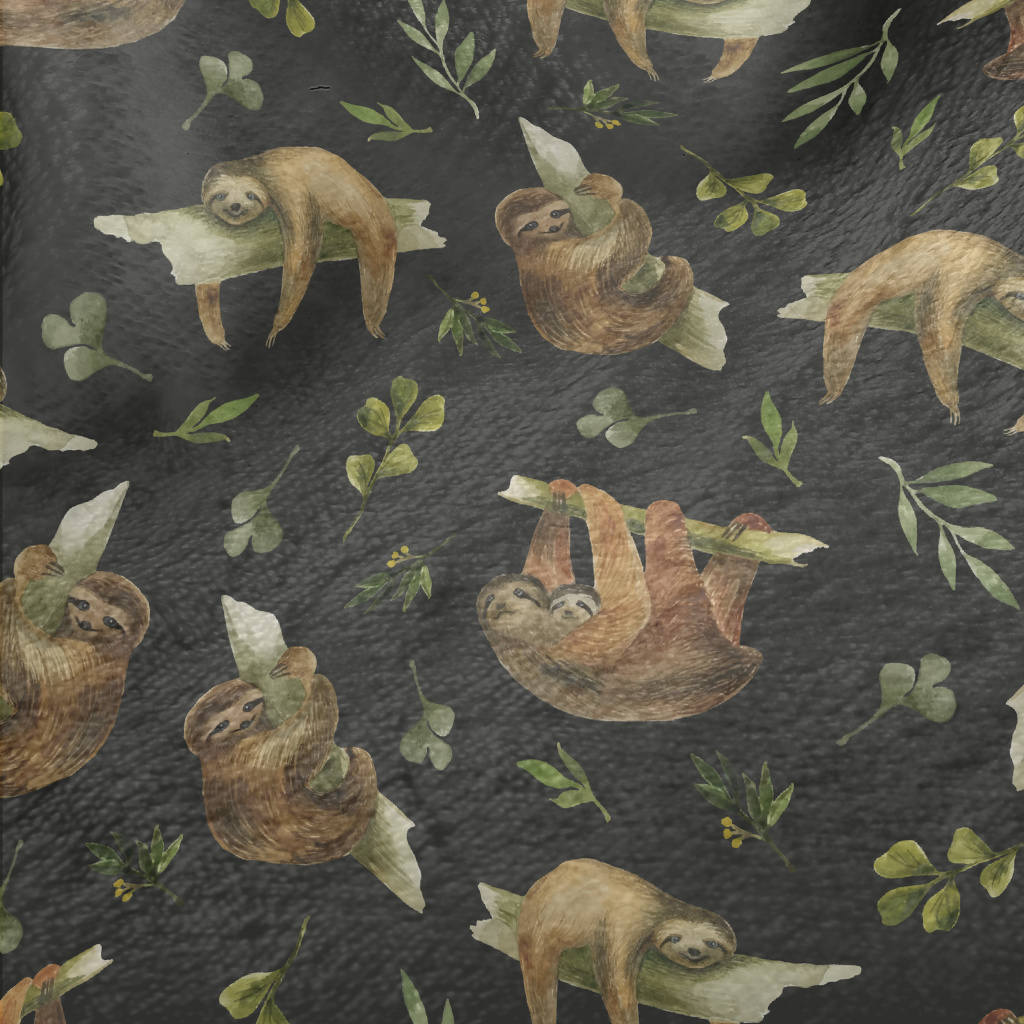 Watercolor Hand Drawn Sloth Minky