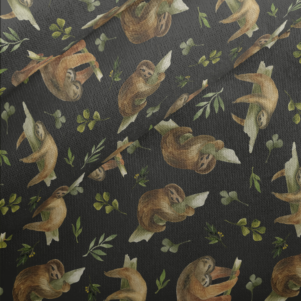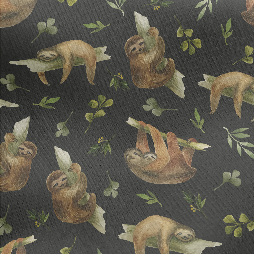 Watercolor Hand Drawn Sloth Jersey Backed Fleece