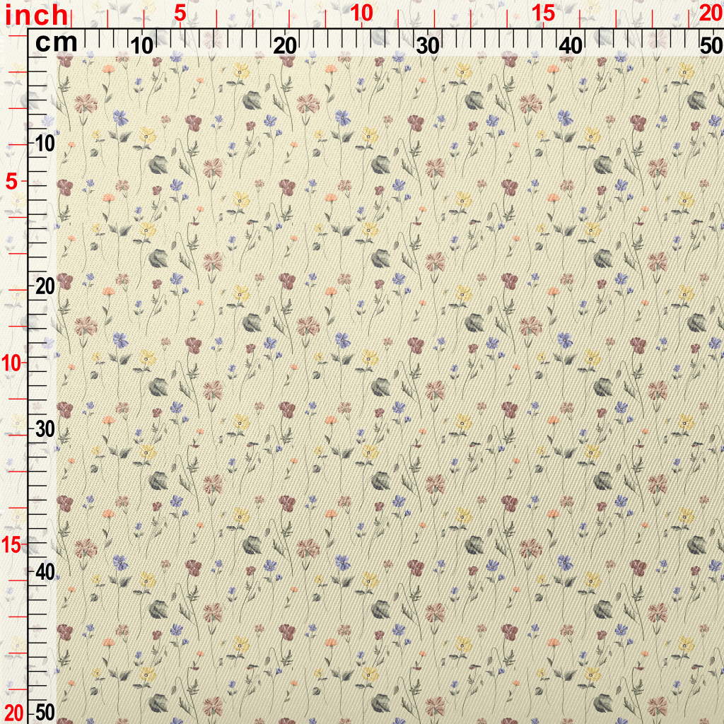 Vintage Hand Drawn Flowers Twill