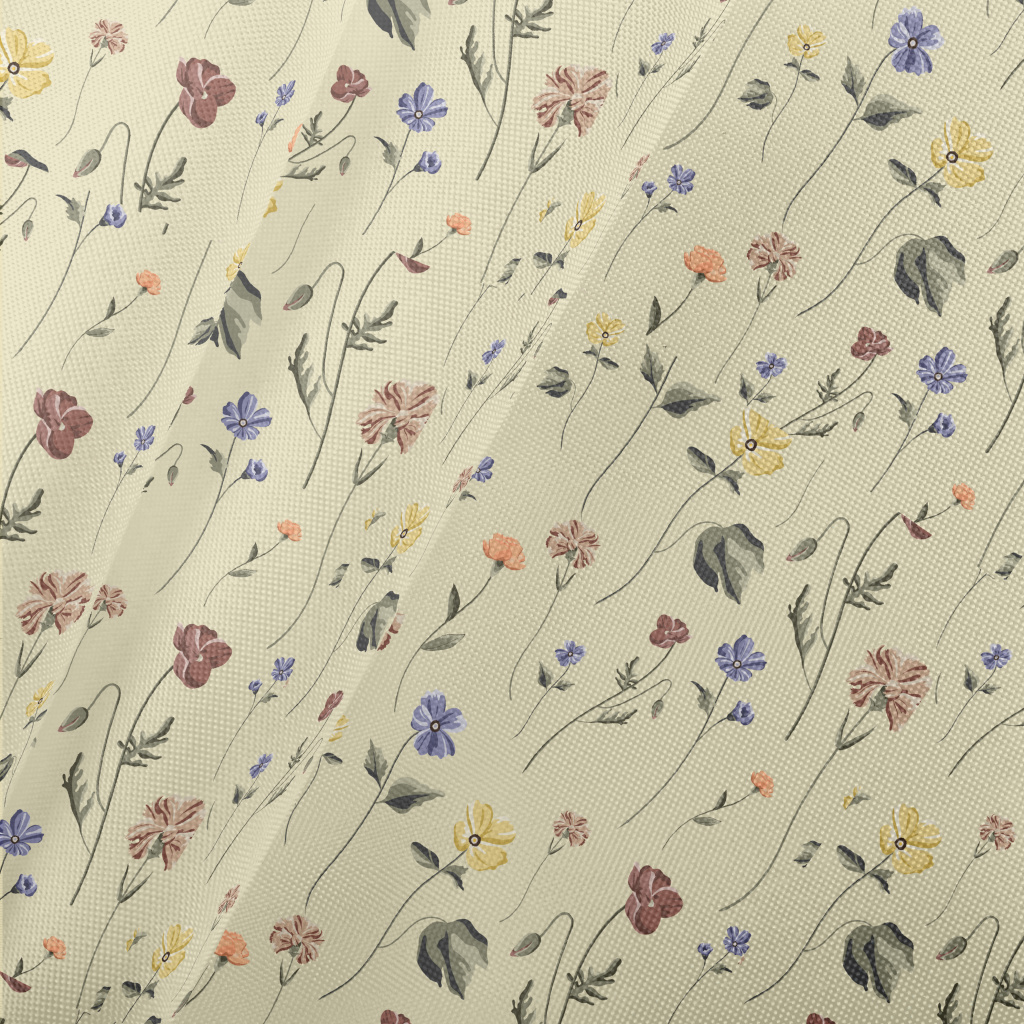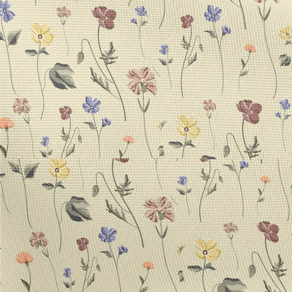 Vintage Hand Drawn Flowers Pongee