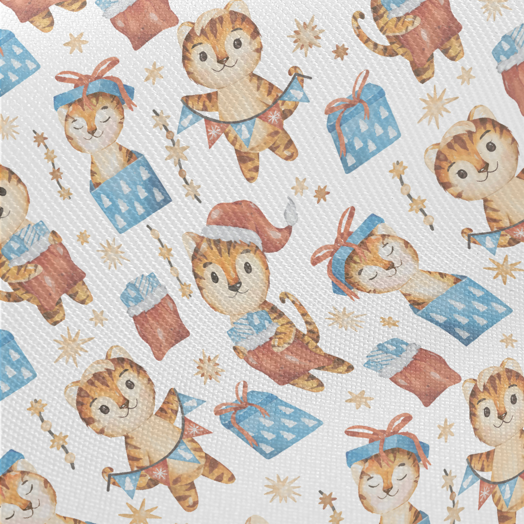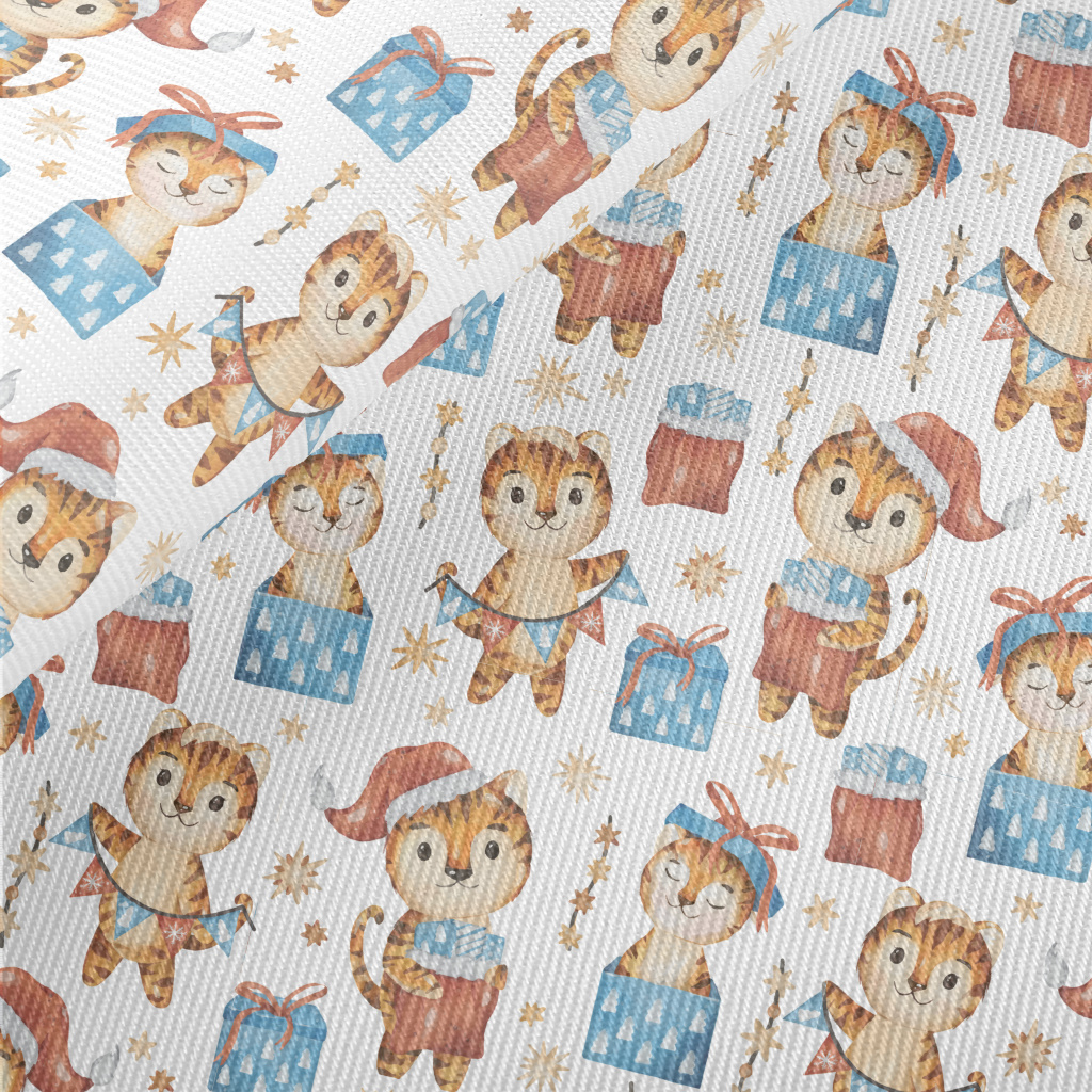 Merry Christmas Little Tiger Midweight Cotton Poplin