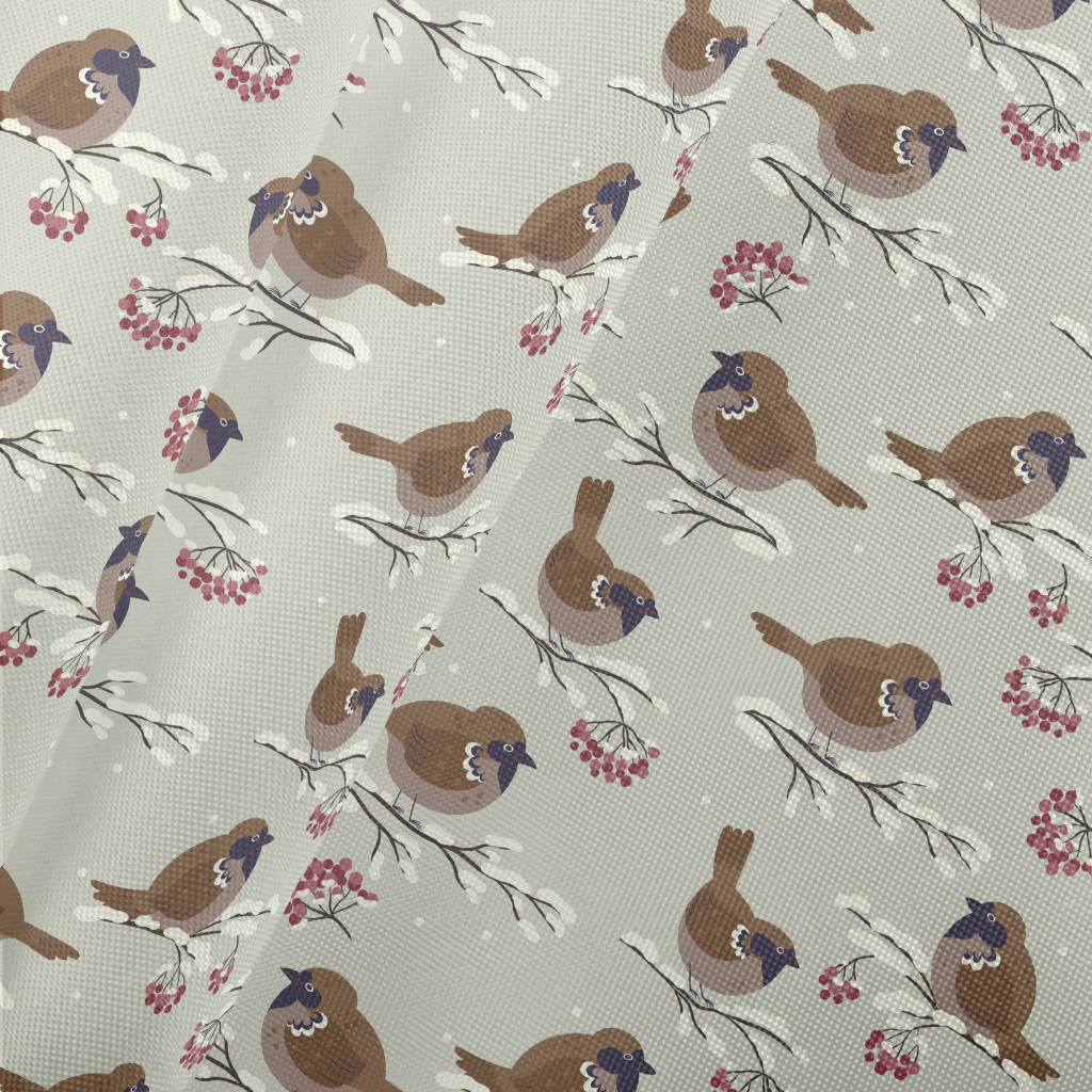Cartoon Winter Sparrow Pongee