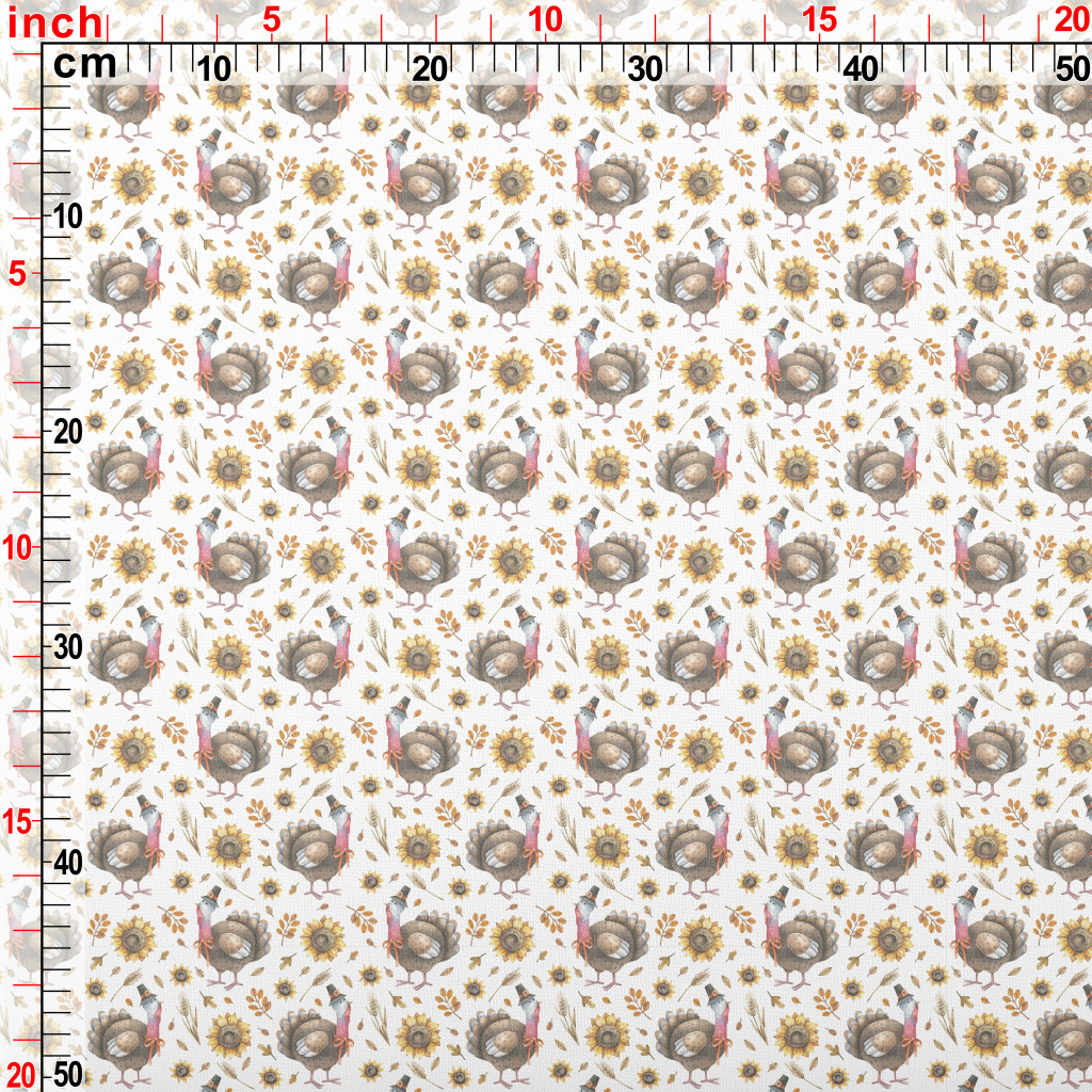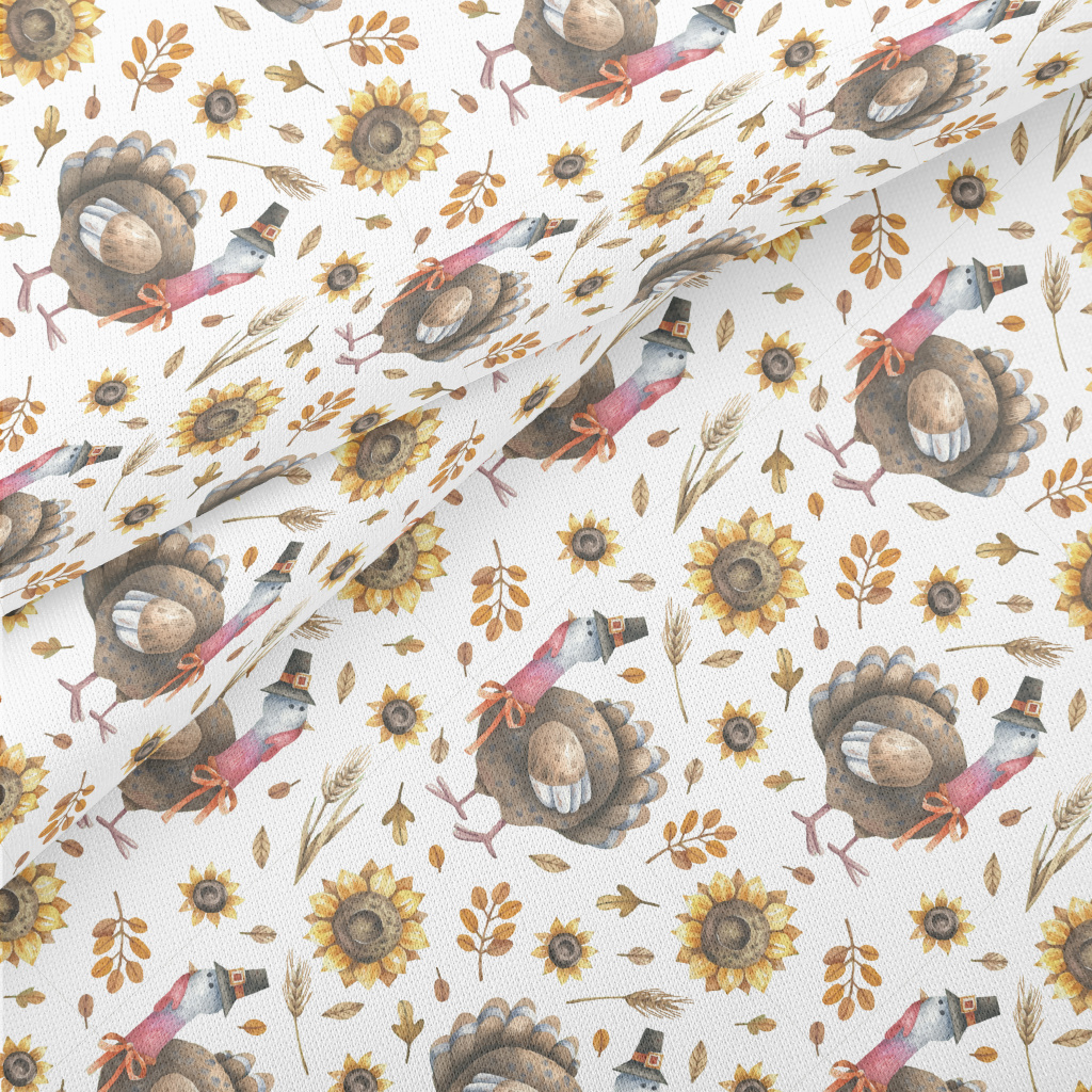 Hand Drawn Thanksgiving Turkey Lightweight Cotton Poplin