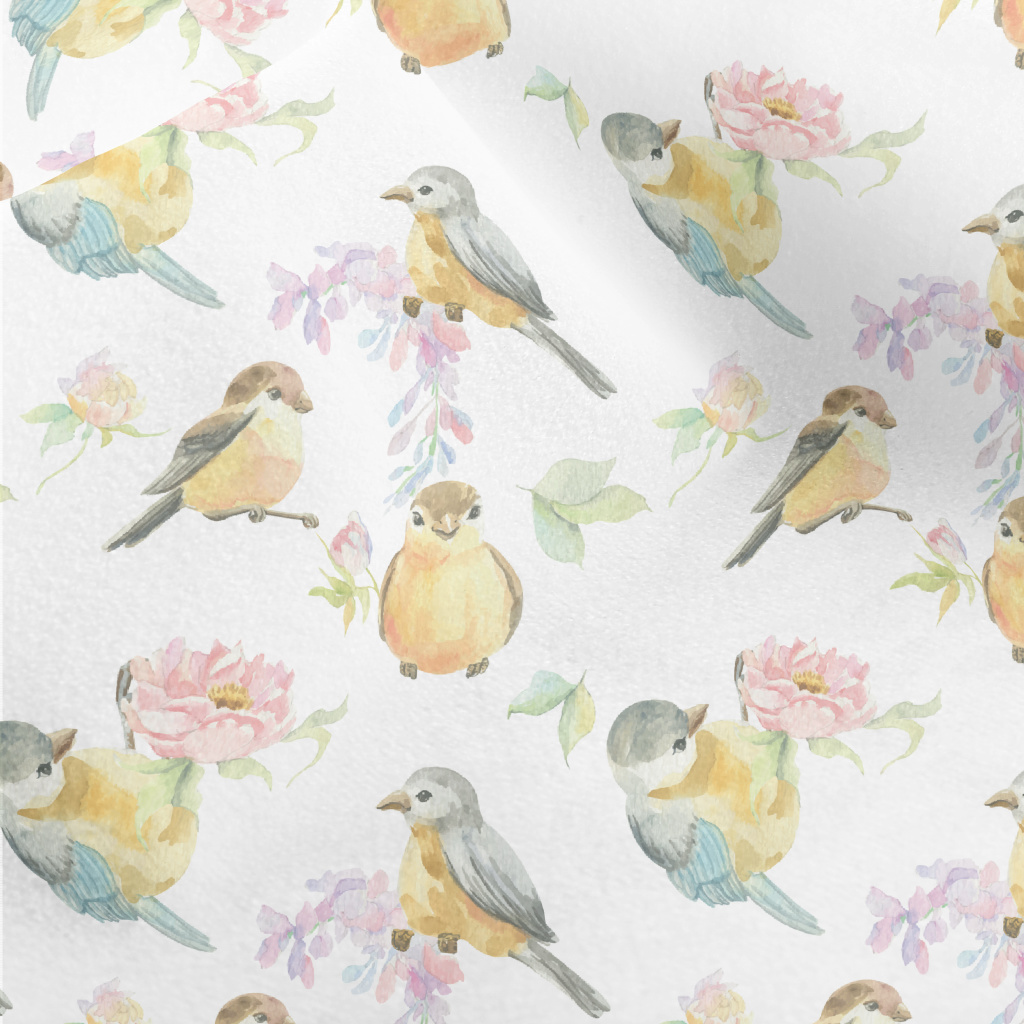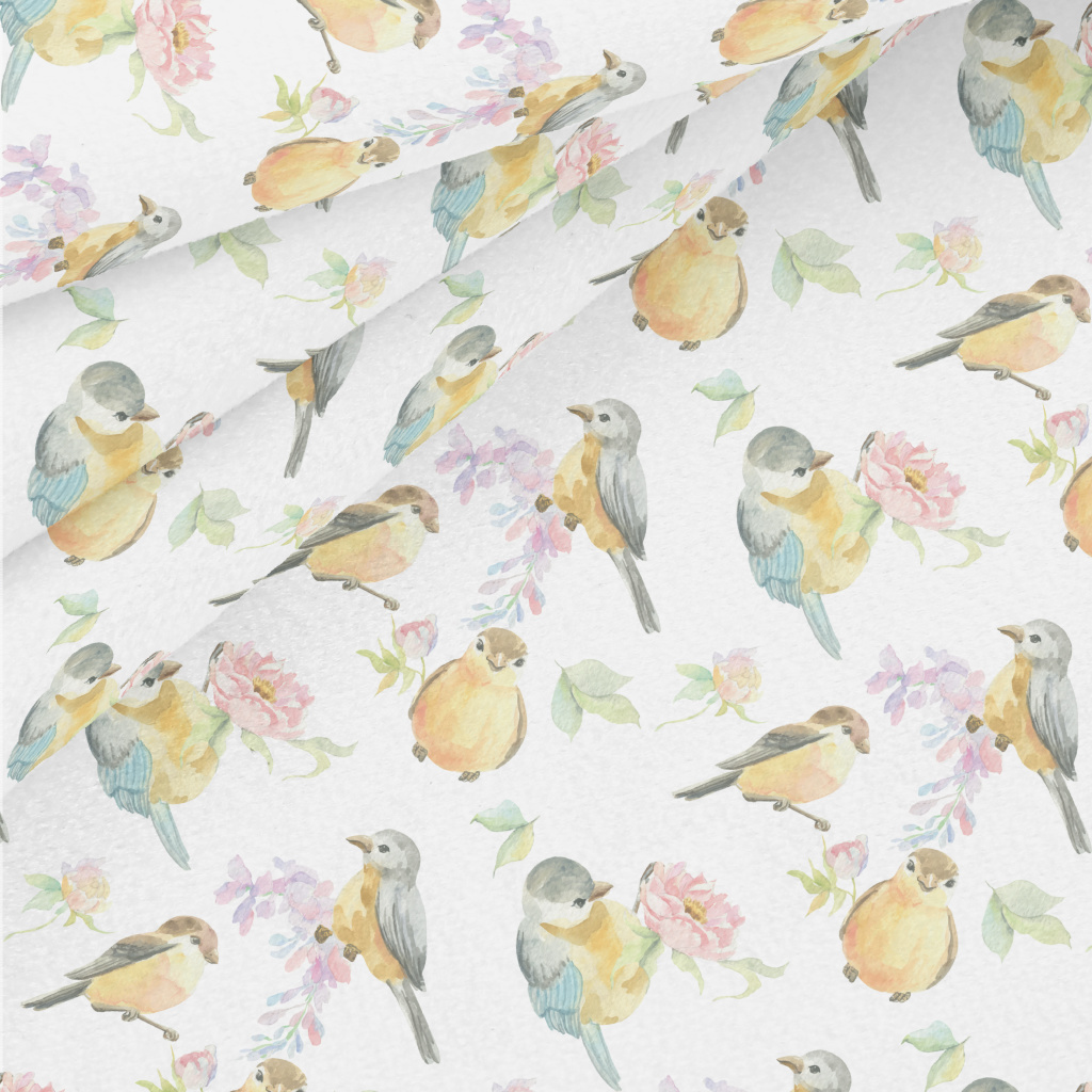 Watercolor Bird And Flowers Micro Fleece