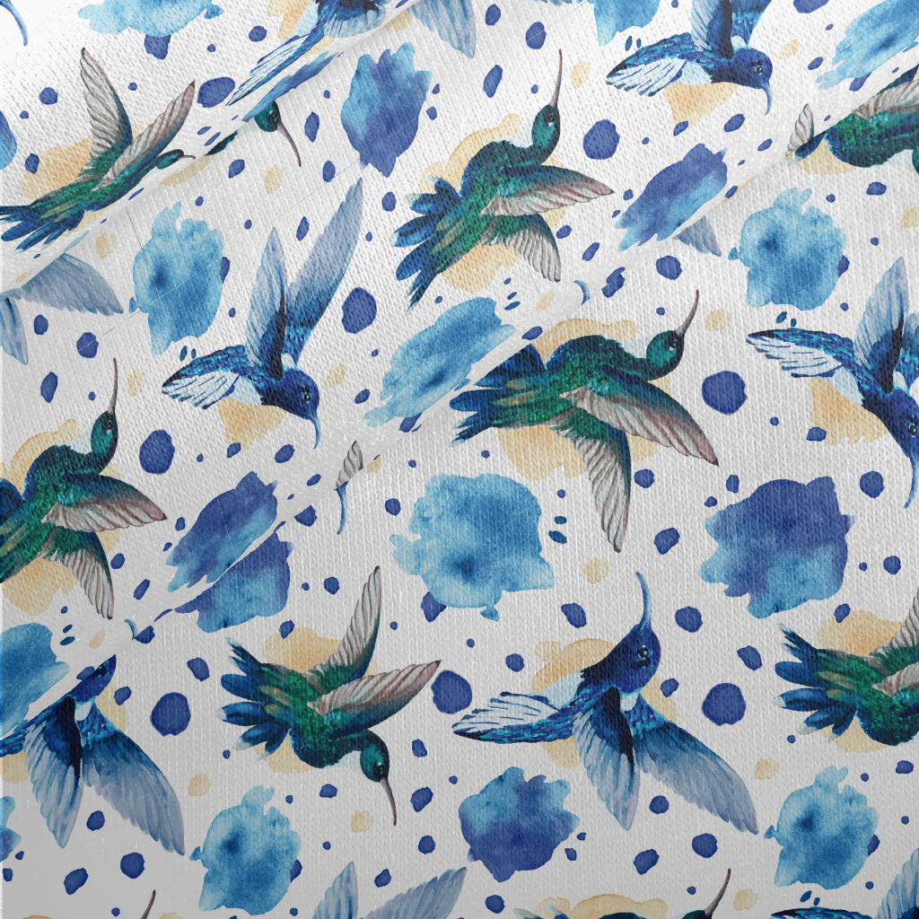 Watercolor Hummingbird Jersey Backed Fleece