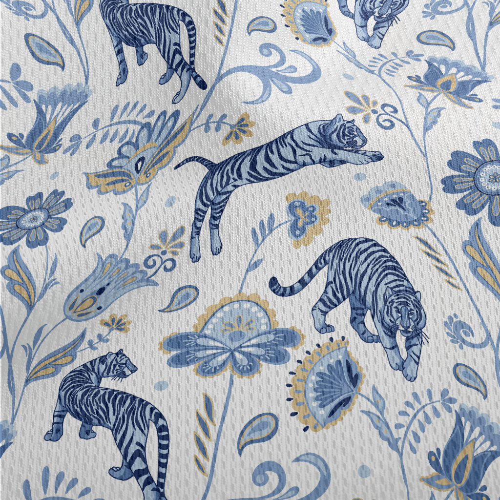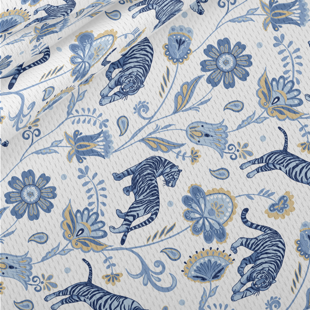 Nordic Blue Tiger And Flowers Athletic Mesh Flat Back