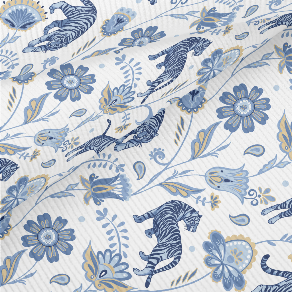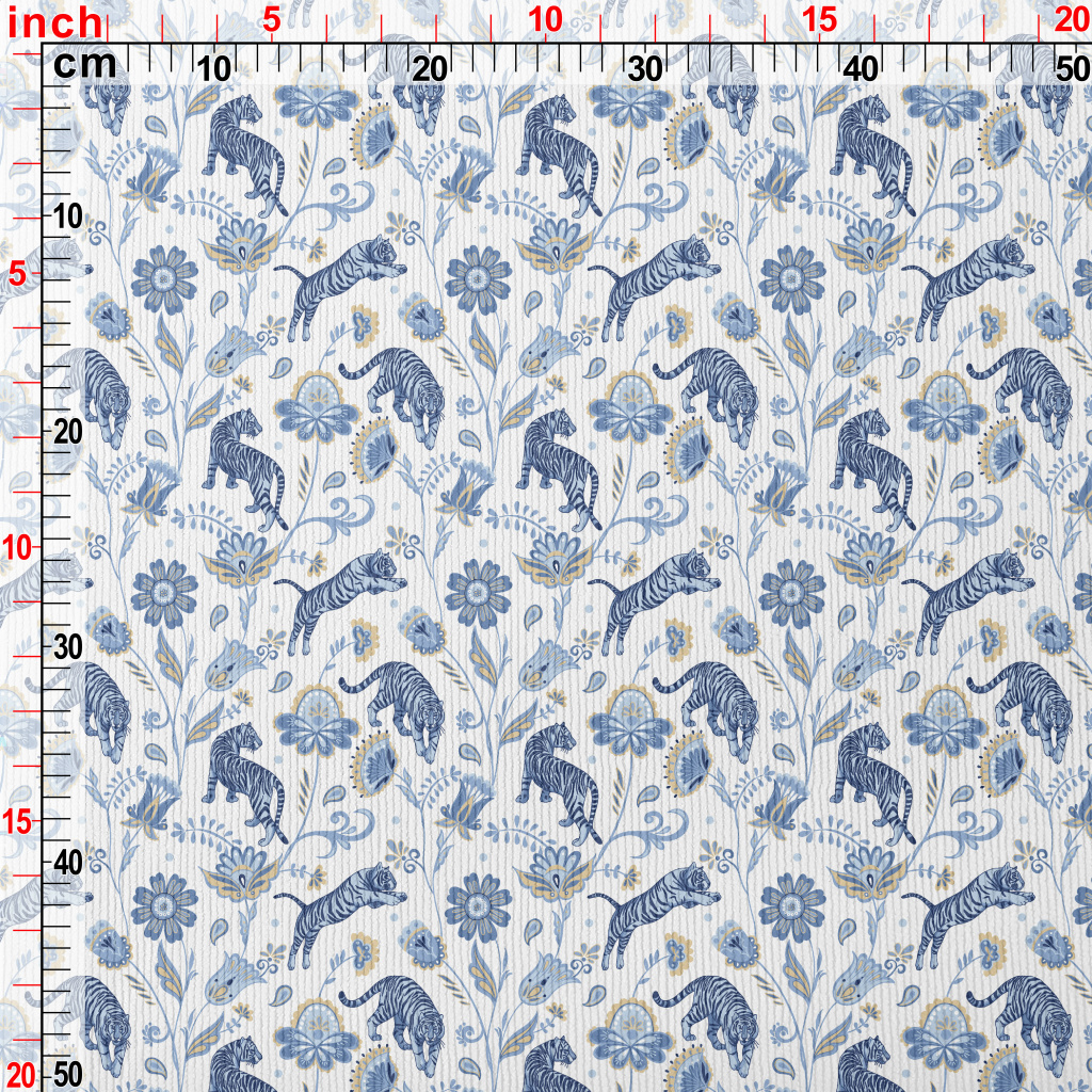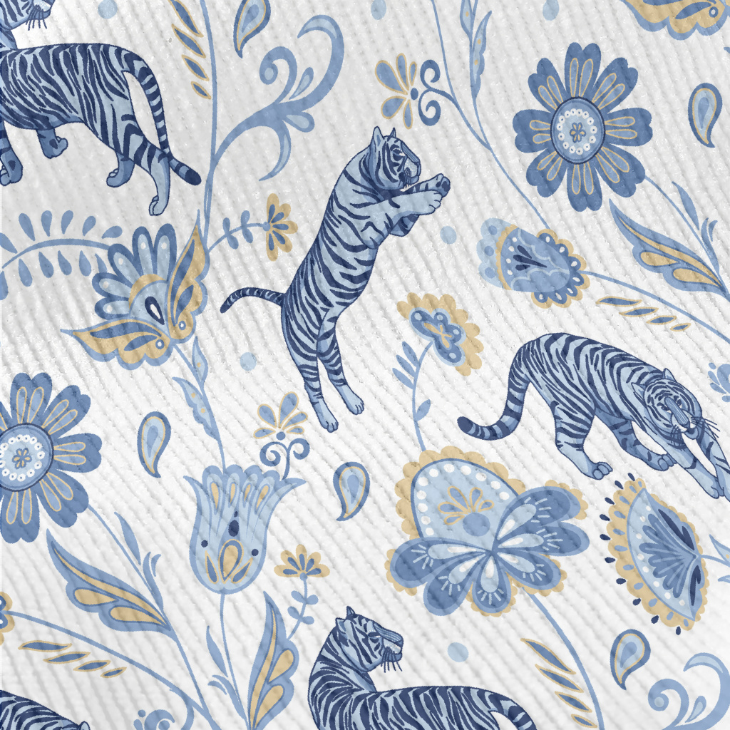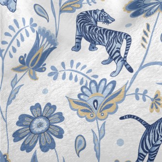 Nordic Blue Tiger And Flowers Standard Corduroy