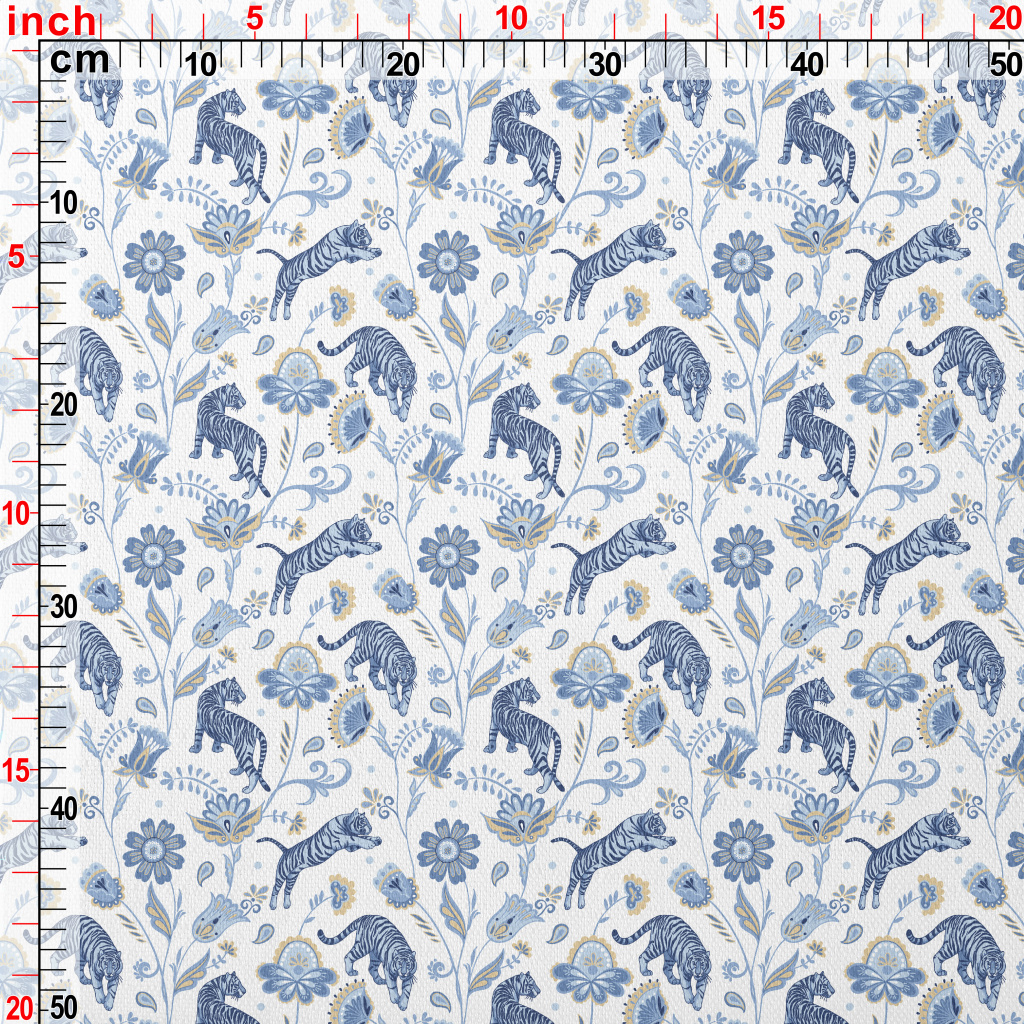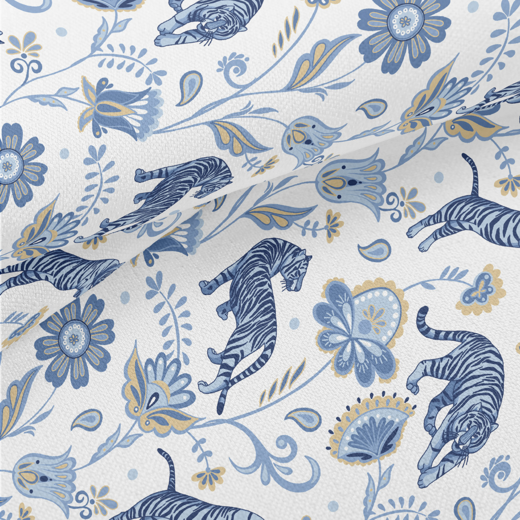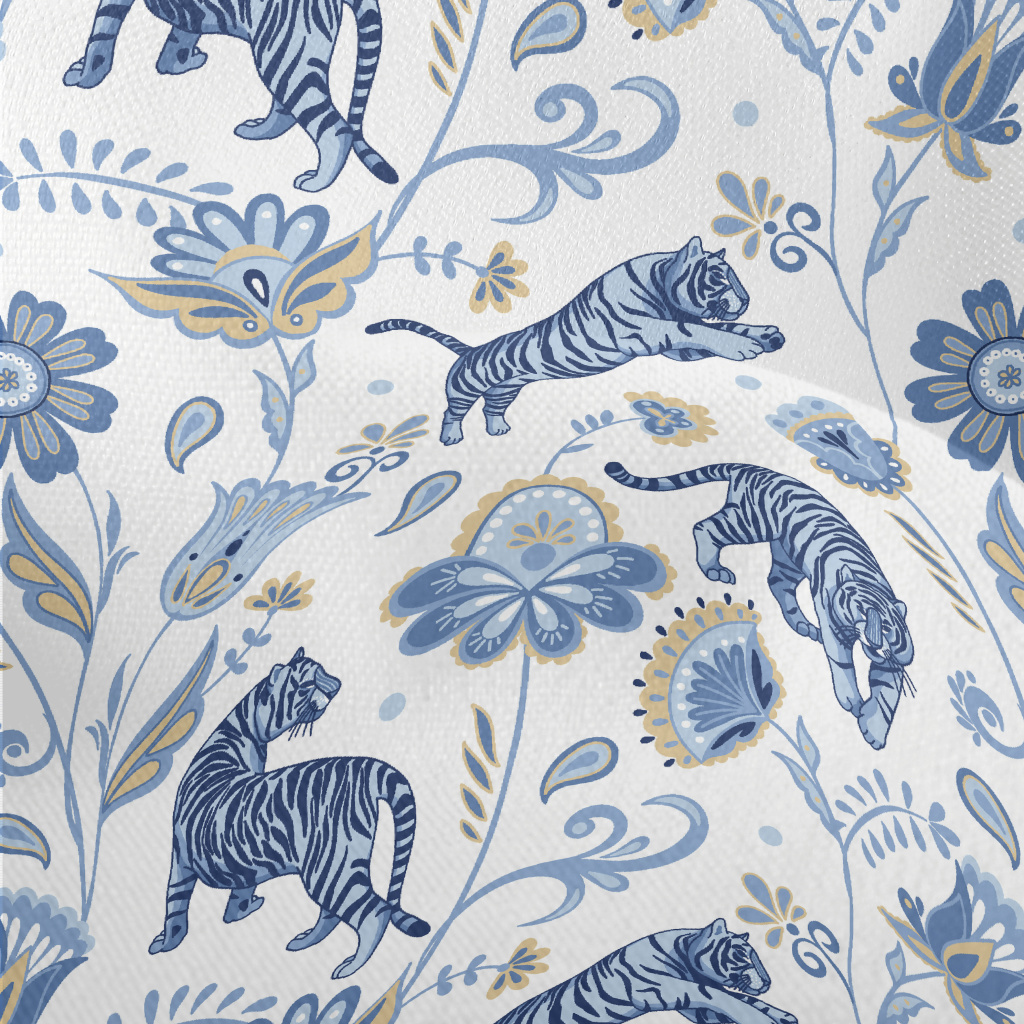 Nordic Blue Tiger And Flowers Lightweight Performance Linen