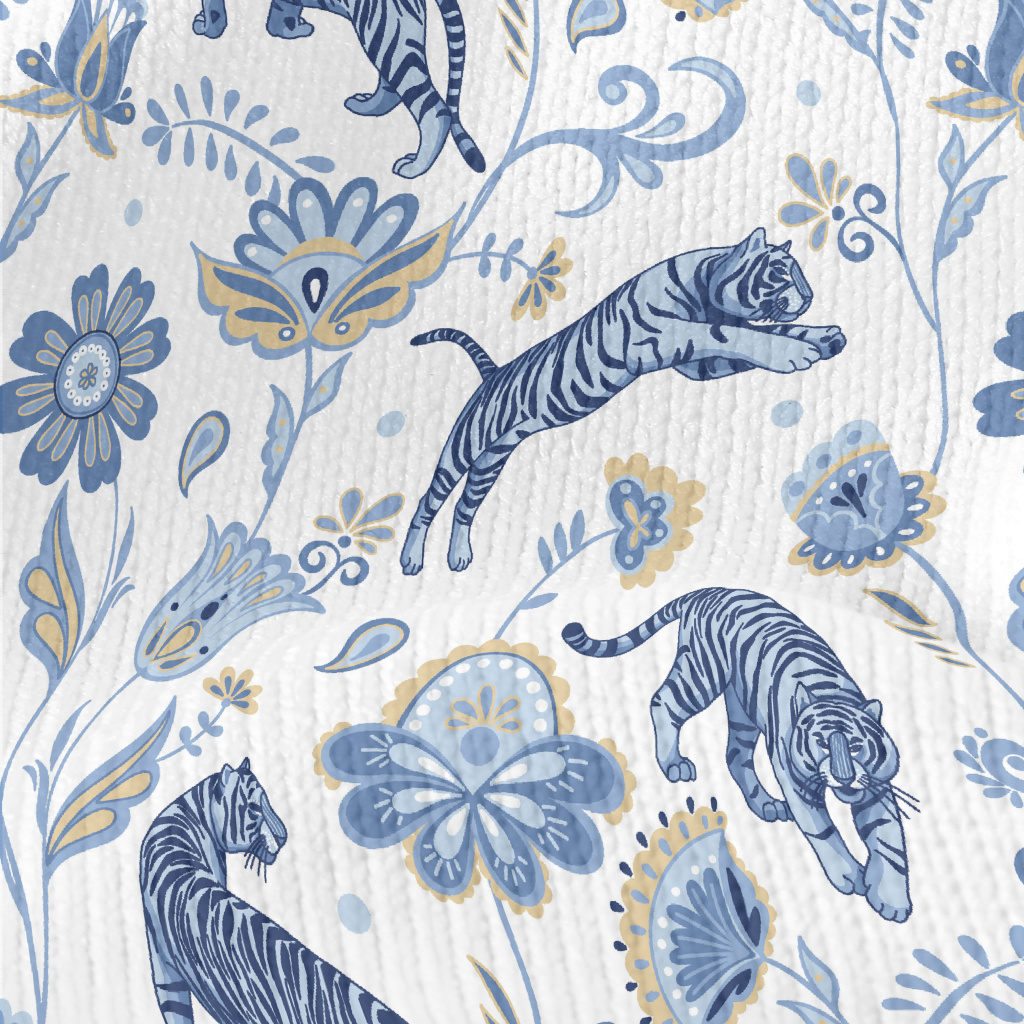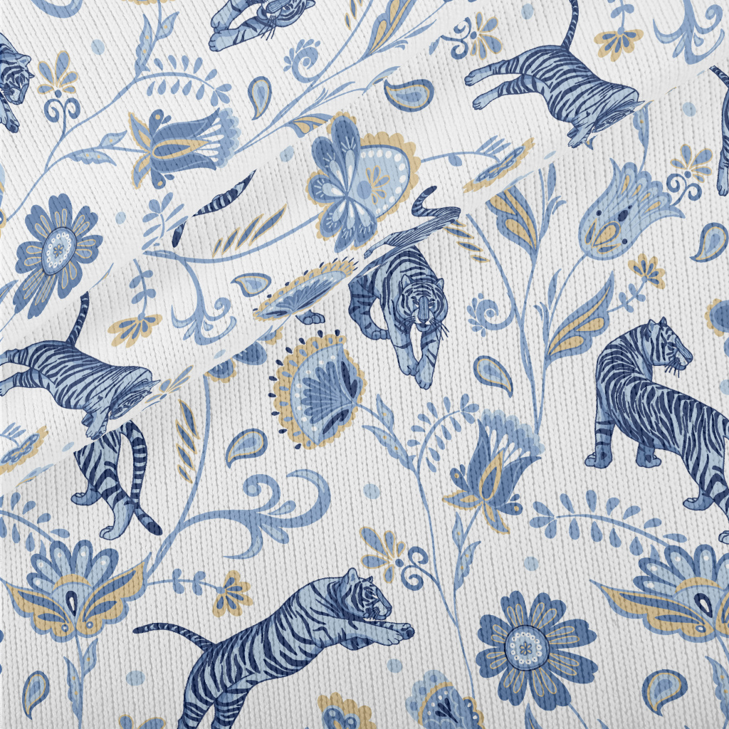 Nordic Blue Tiger And Flowers Stretch Jersey