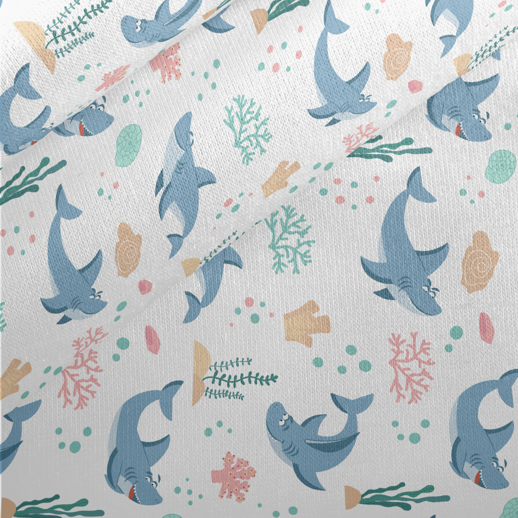 Playful Shark Swimming Jersey Backed Fleece