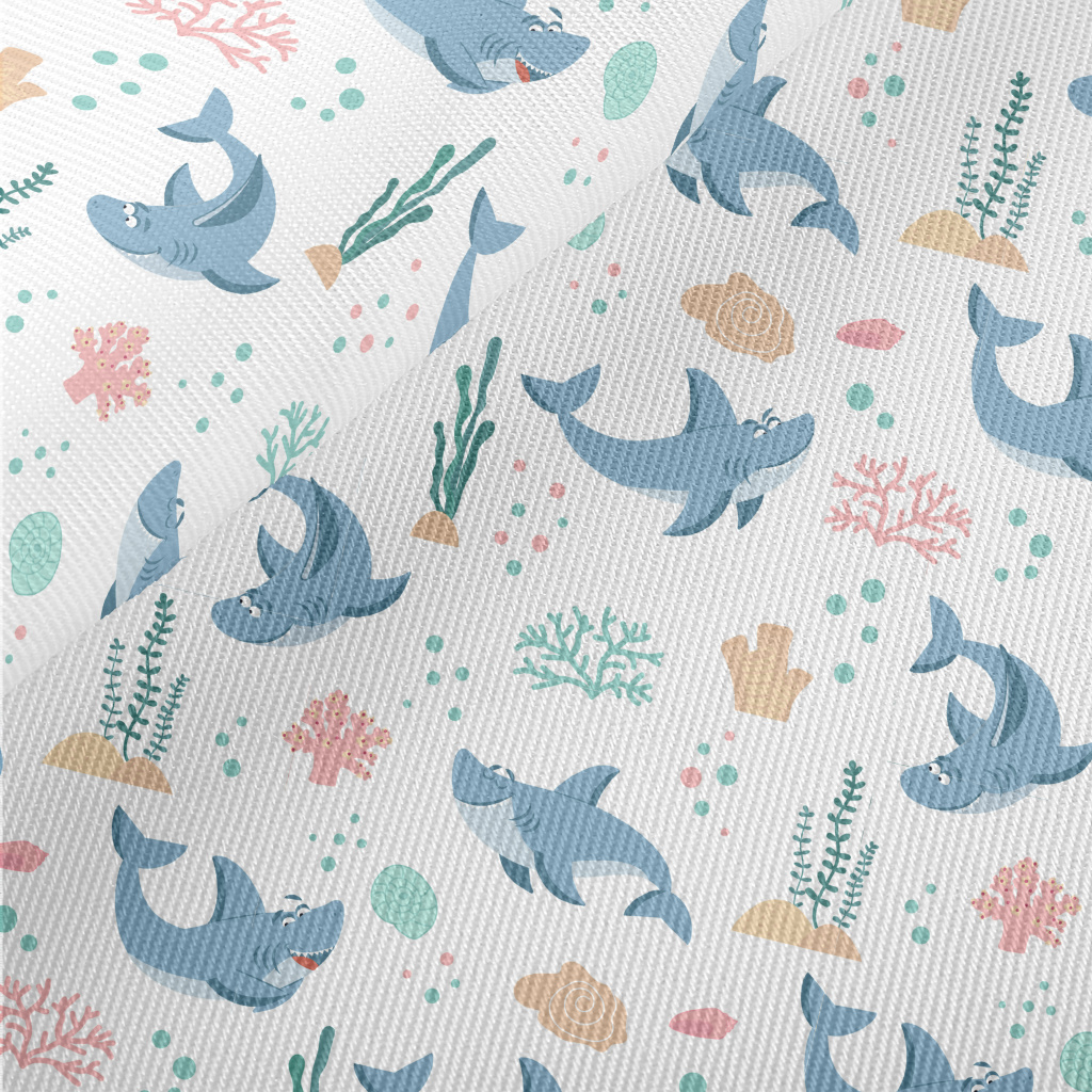 Playful Shark Swimming Midweight Cotton Poplin