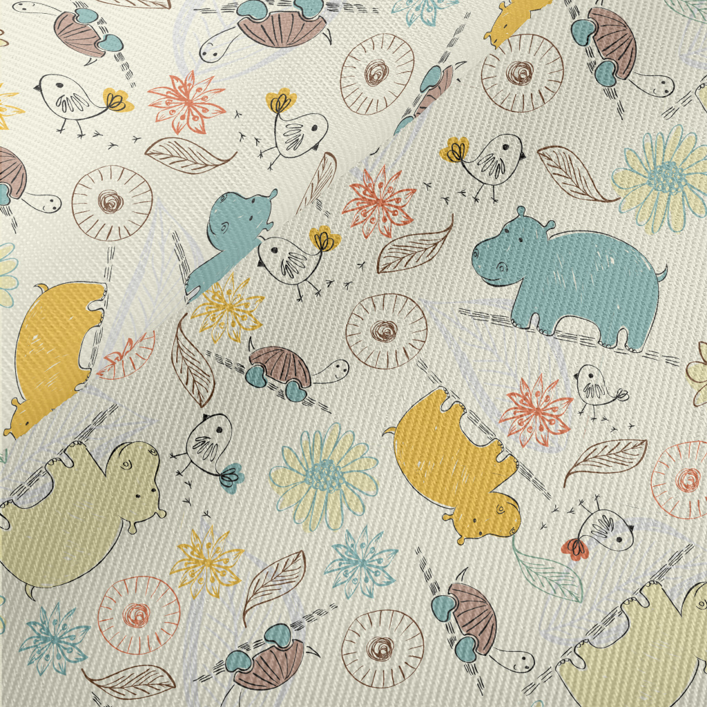 Easygoing Hippo And Turtle Twill