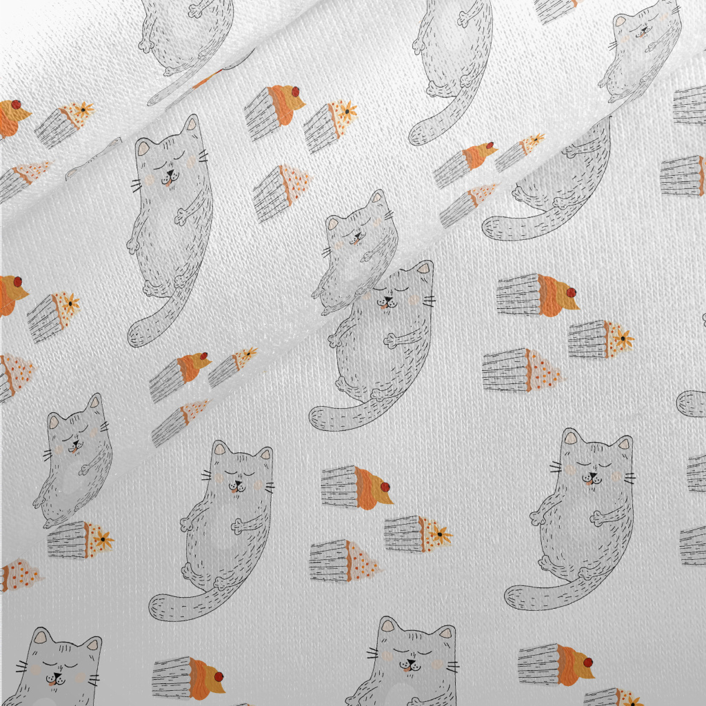 Satisfied Cat After Eating Jersey Backed Fleece