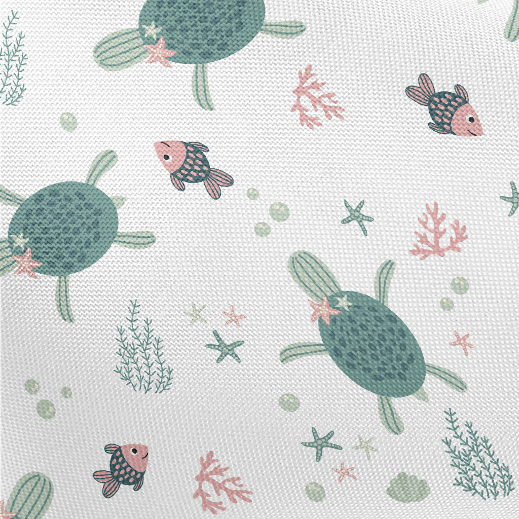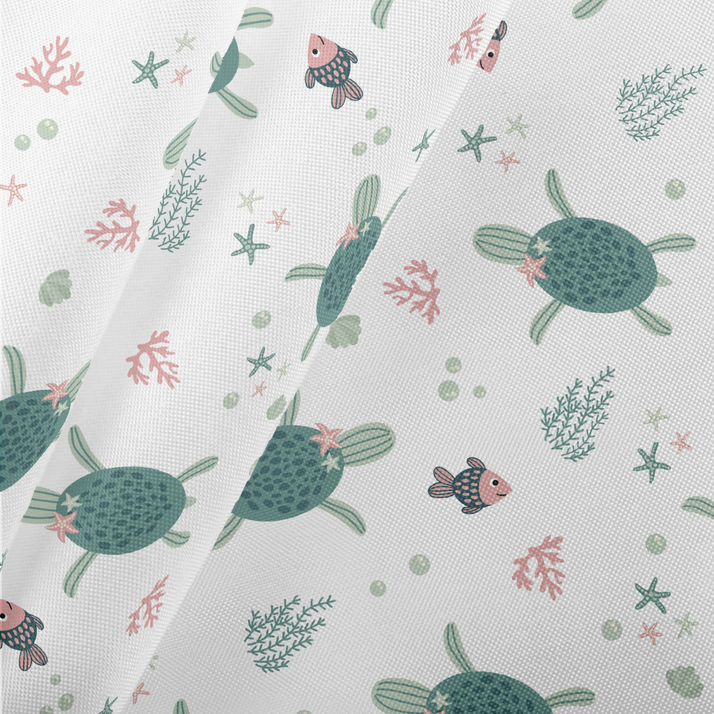 Sea Turtle Swimming With Fish Pongee