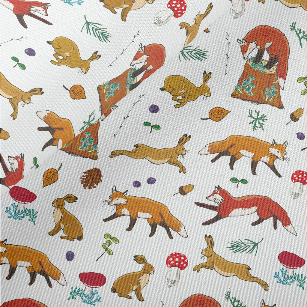 Forest Animals Fox And Hare Midweight Cotton Poplin