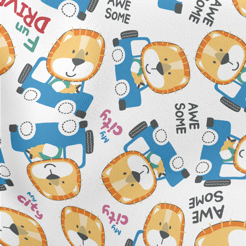Smiling Animal Driving A Car Lightweight Cotton Poplin