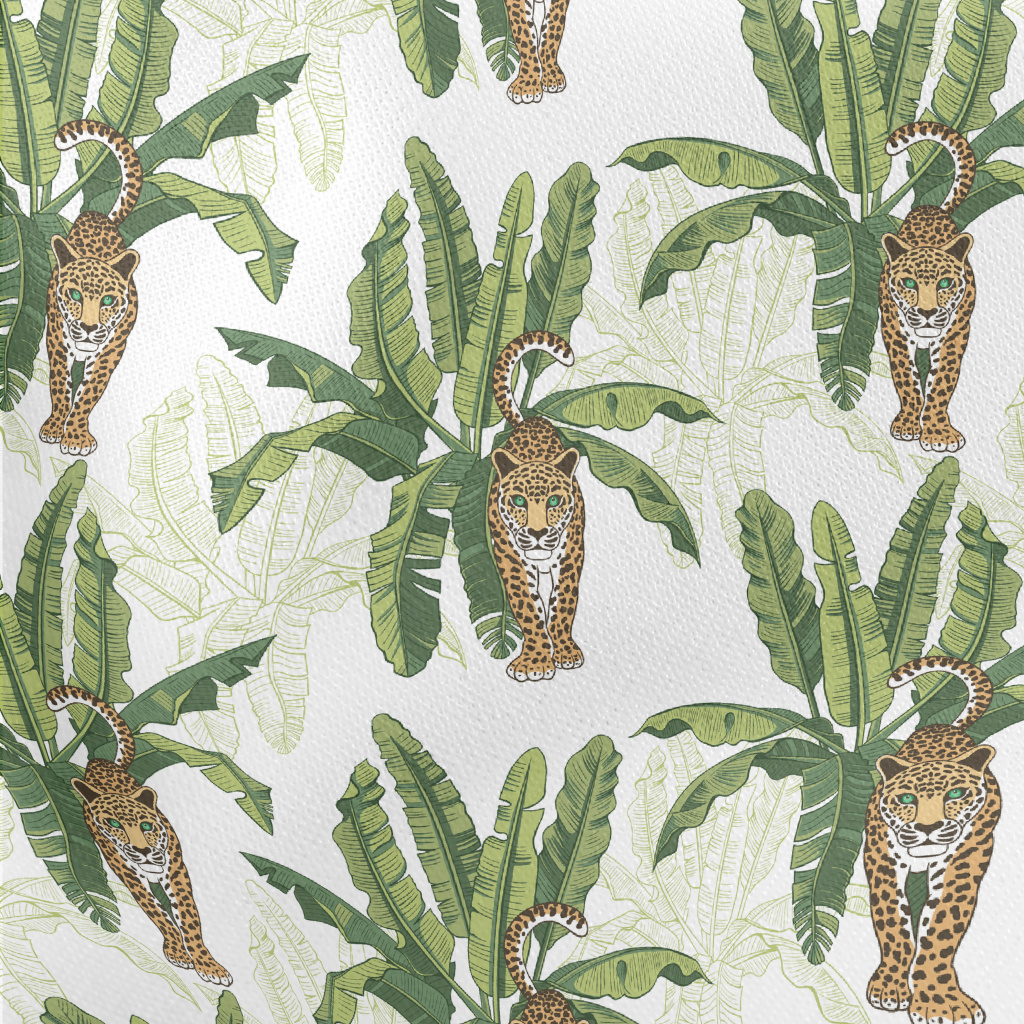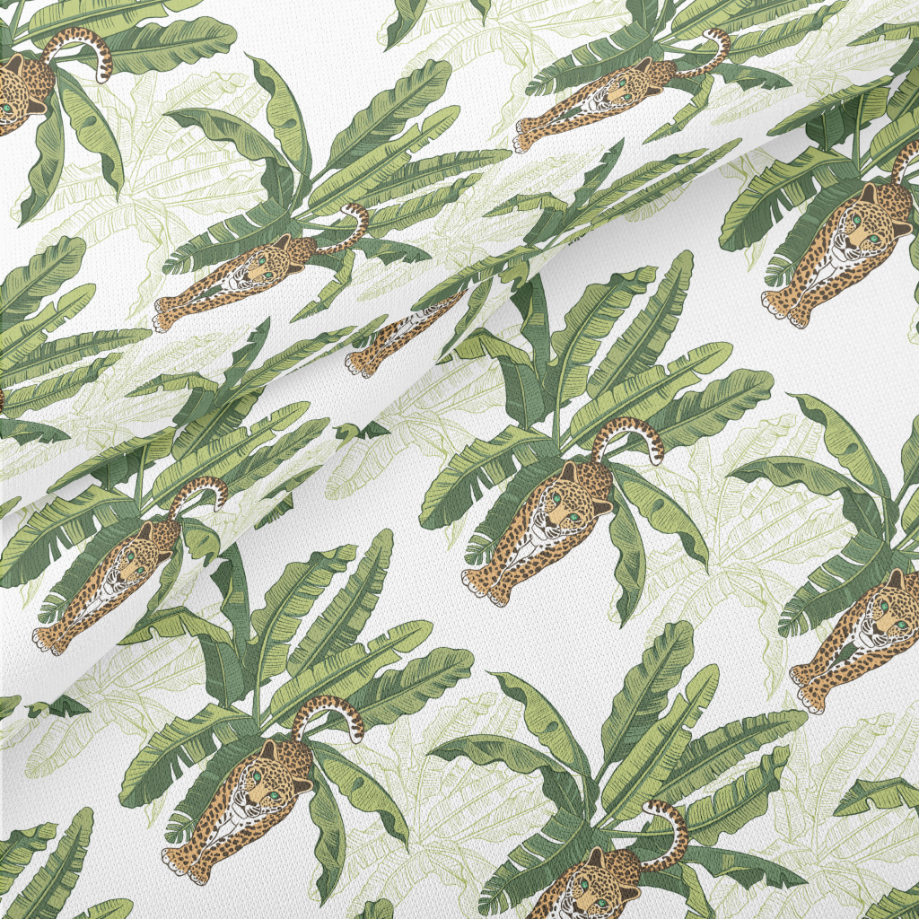 Tiger And Lush Banana Leaves Lightweight Cotton Poplin