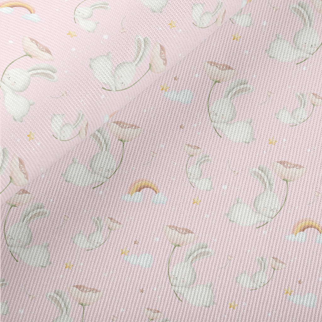 Flying Rabbit Holding Flowers Midweight Cotton Poplin